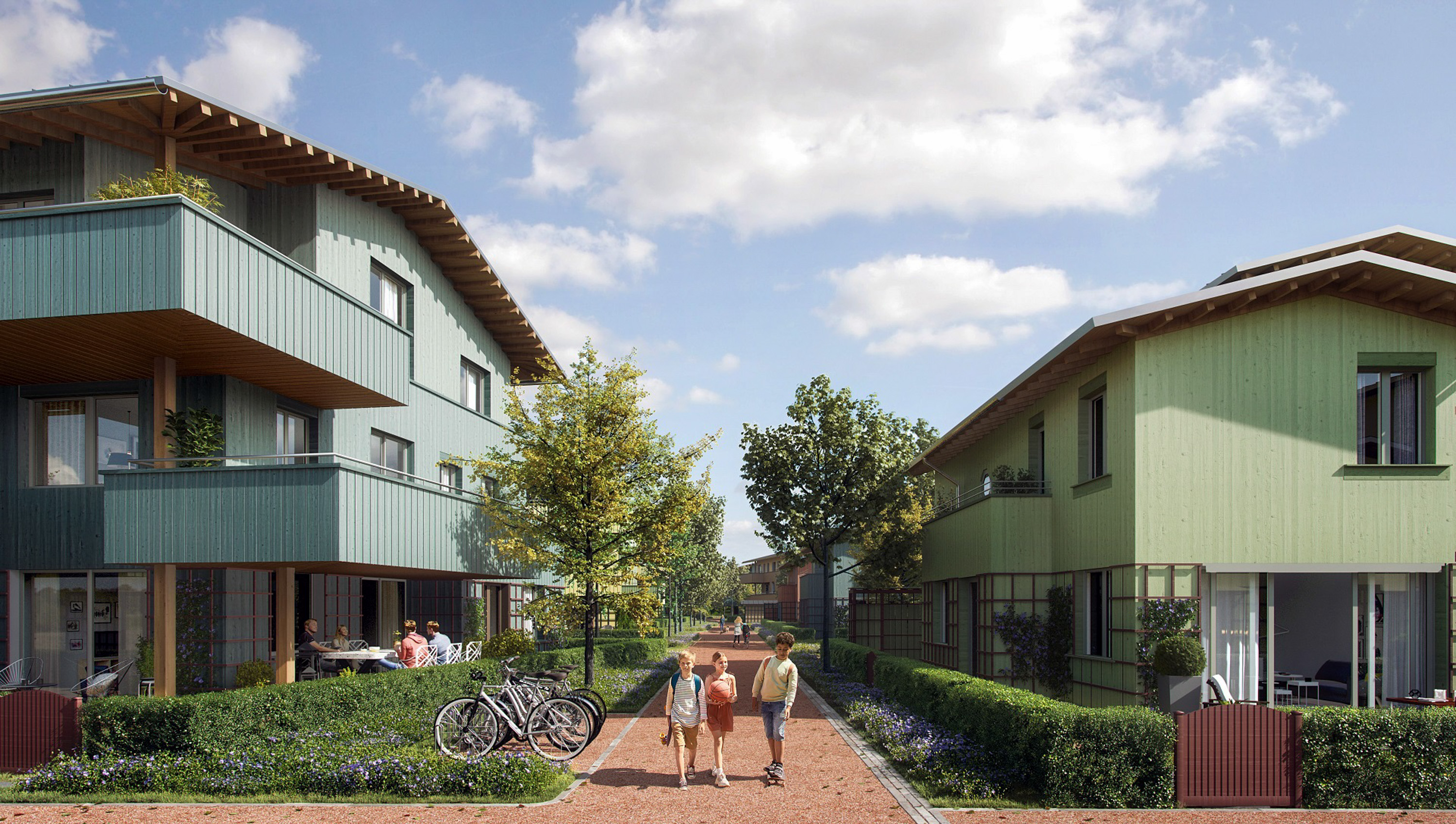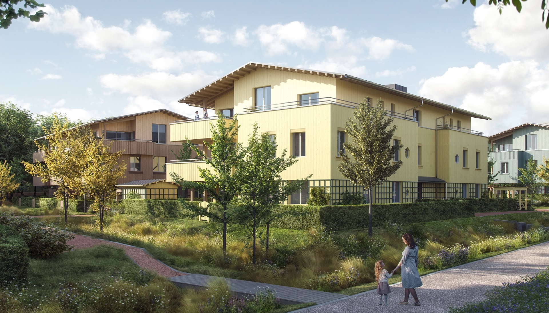 Alle illustrasjoner er utarbeidet basert på tegninger av fremtidige bygg. Illustrerte fasader vil kunne avvike fra ferdige bygg. Elementer og materialer i illustrasjonene kan avvike fra standardleveranse. Øvrige bygg, beplantning, vegetasjon og fellesarealer er ikke endelig prosjektert.