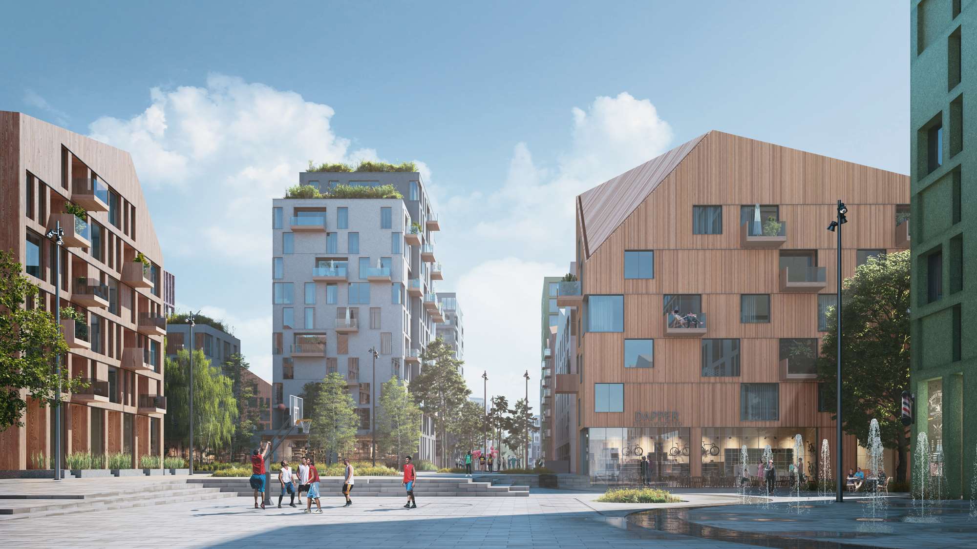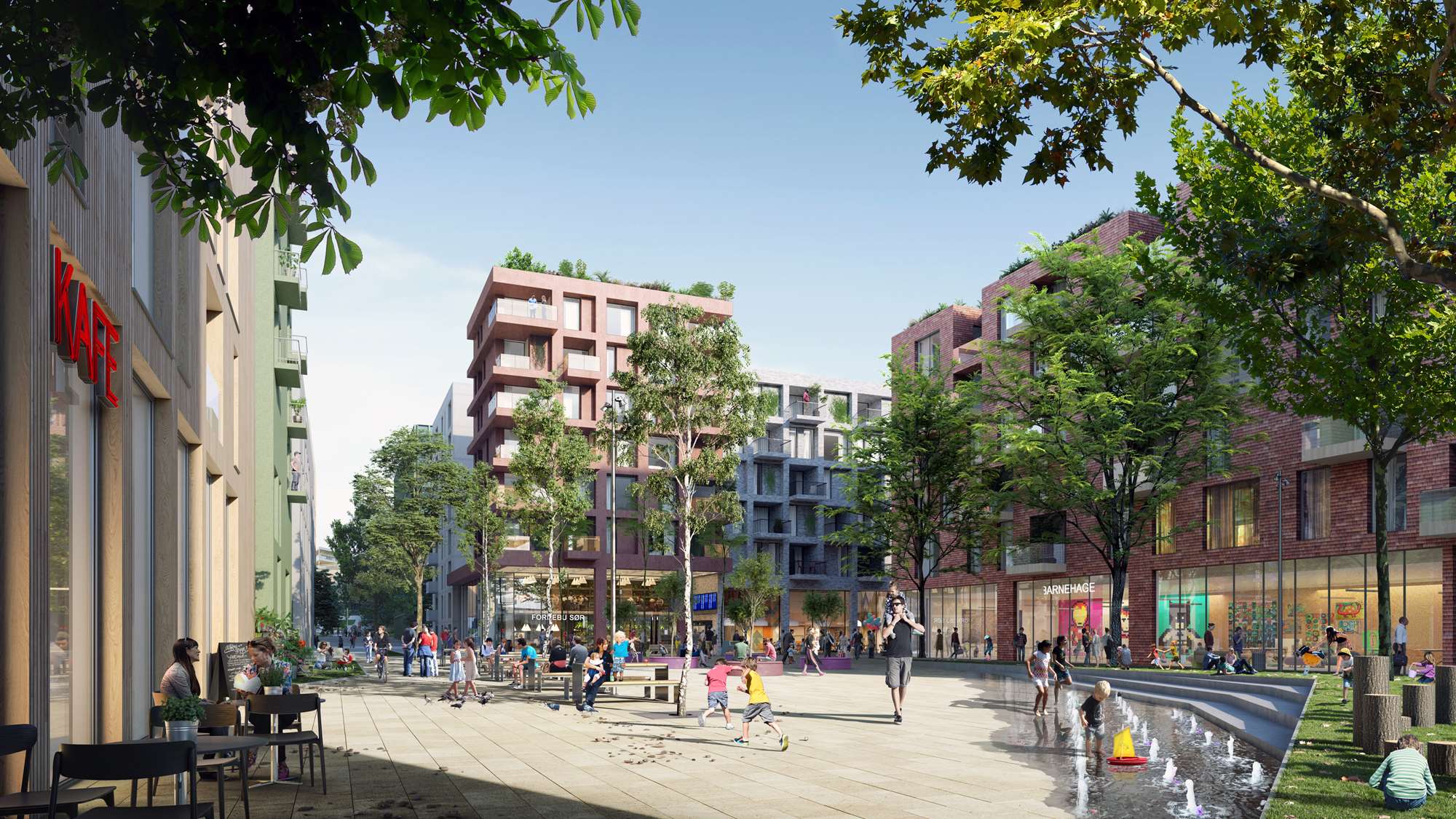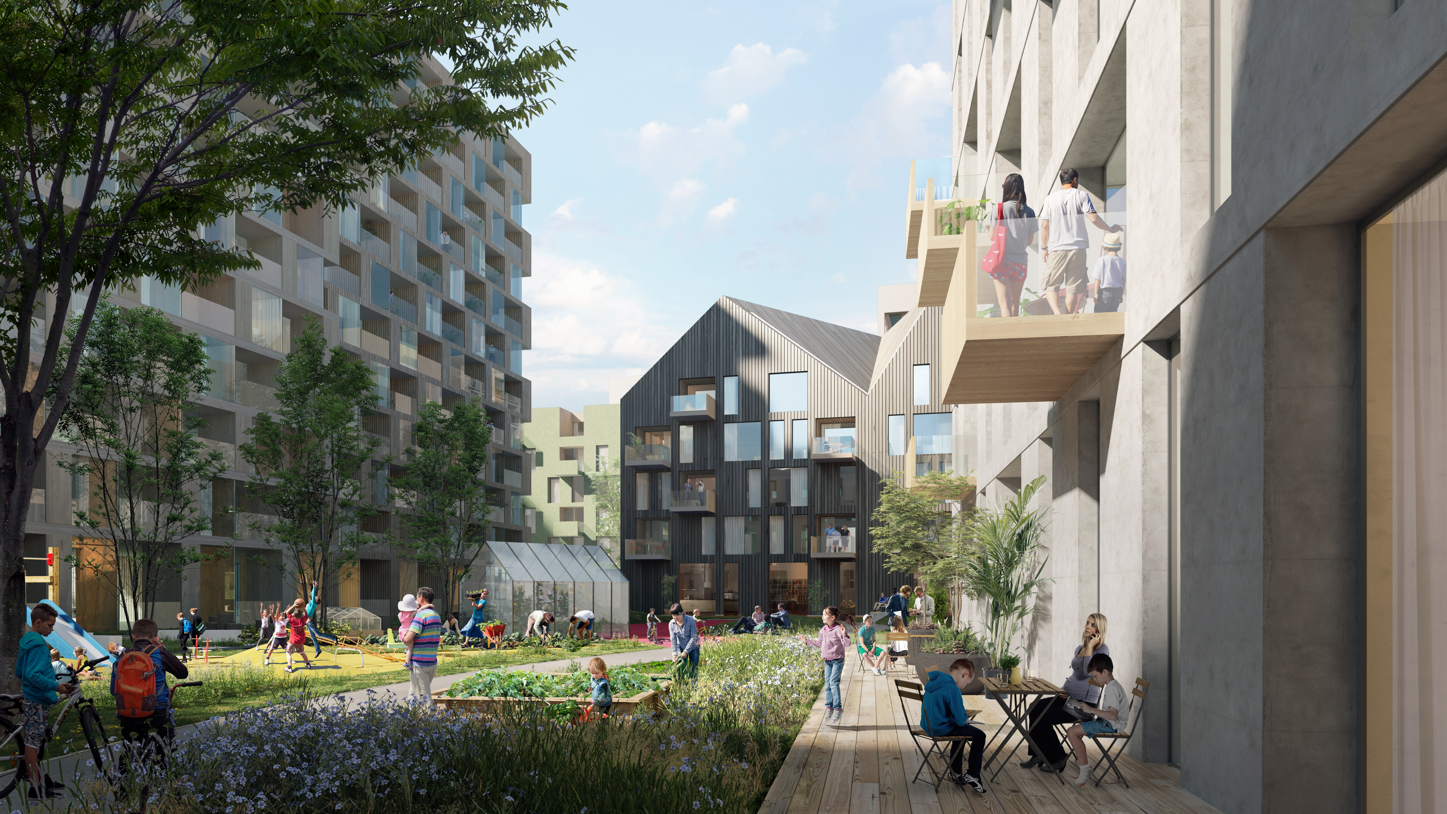 Alle illustrasjoner er utarbeidet basert på tegninger av fremtidige bygg. Illustrerte fasader vil kunne avvike fra ferdige bygg. Elementer og materialer i illustrasjonene kan avvike fra standardleveranse. Øvrige bygg, beplantning, vegetasjon og fellesarealer er ikke endelig prosjektert.