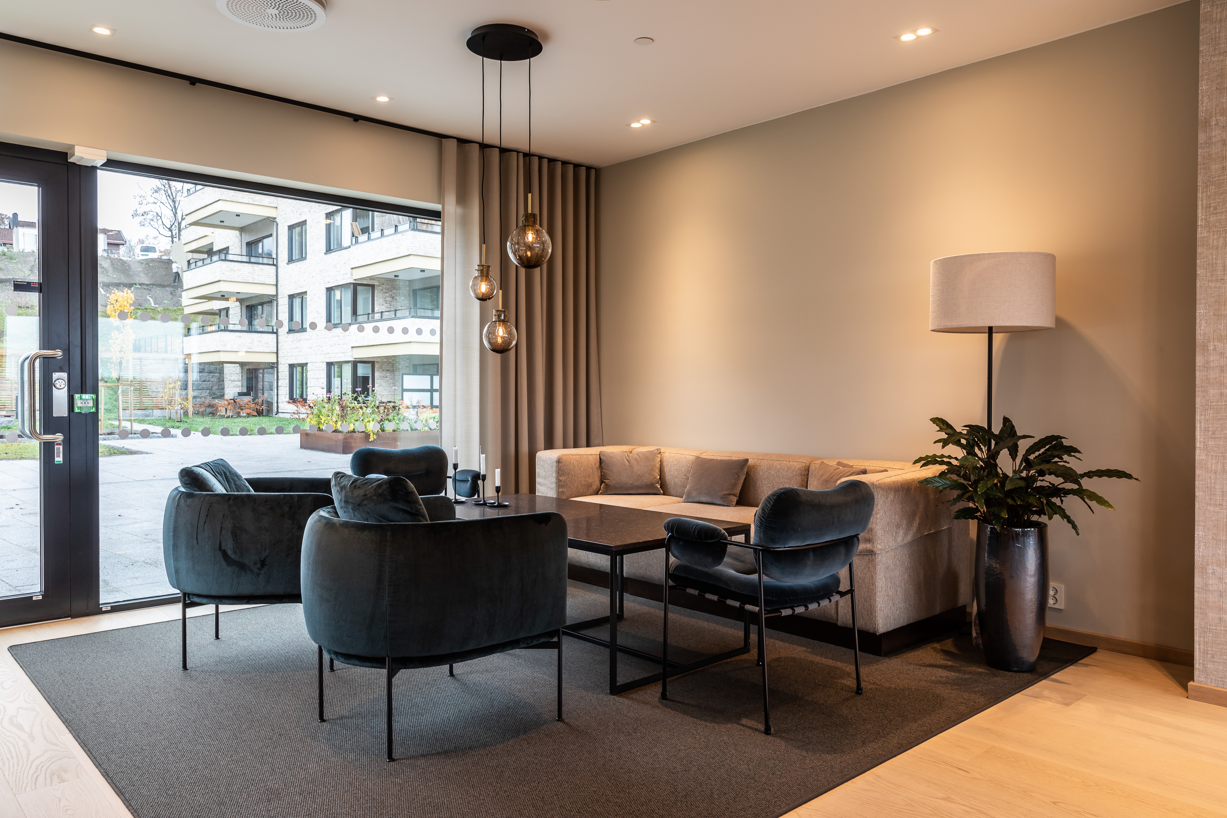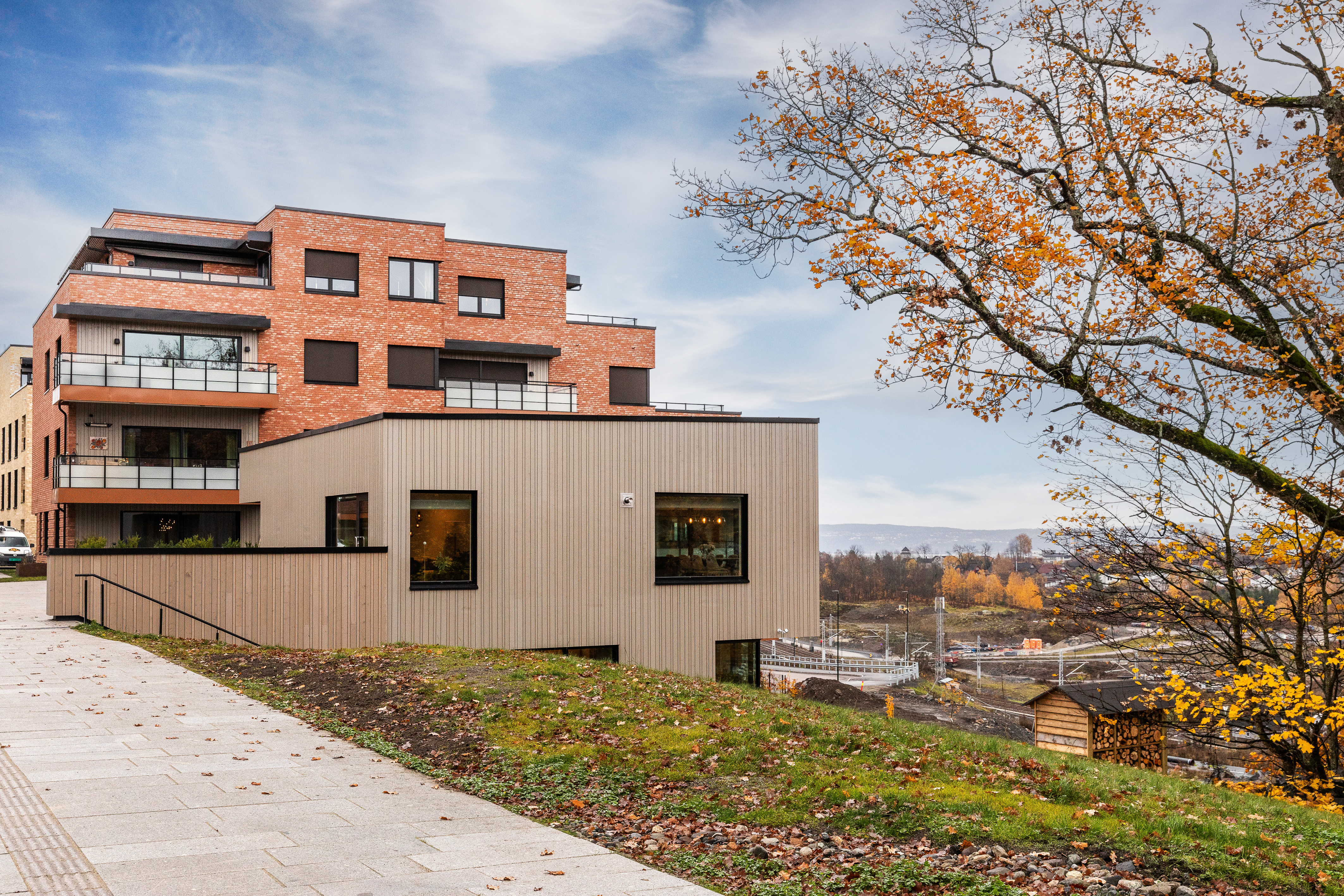 Alle illustrasjoner er utarbeidet basert på tegninger av fremtidige bygg. Illustrerte fasader vil kunne avvike fra ferdige bygg. Elementer og materialer i illustrasjonene kan avvike fra standardleveranse. Øvrige bygg, beplantning, vegetasjon og fellesarealer er ikke endelig prosjektert.
