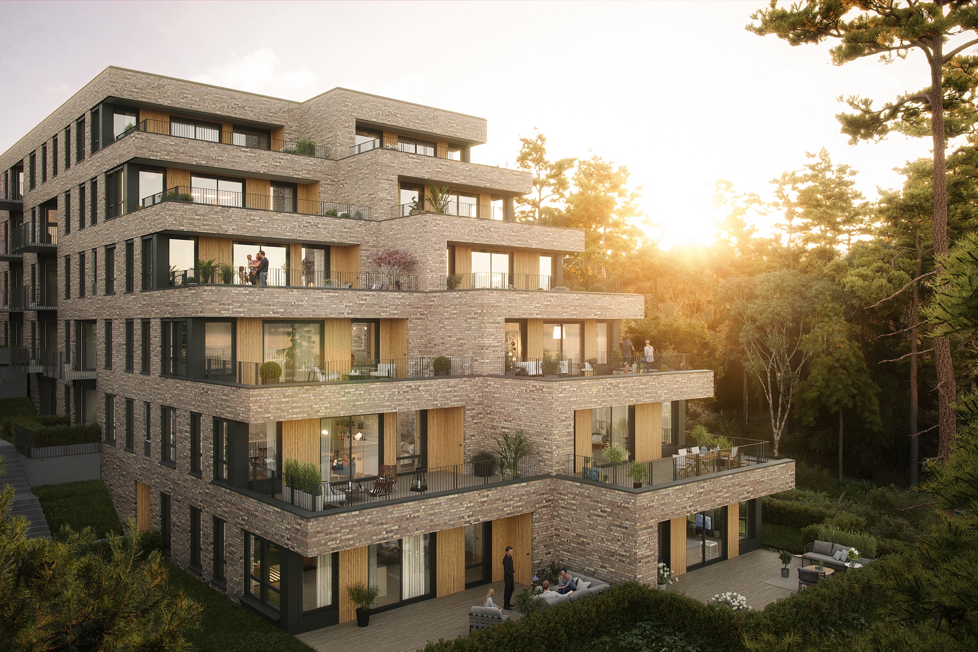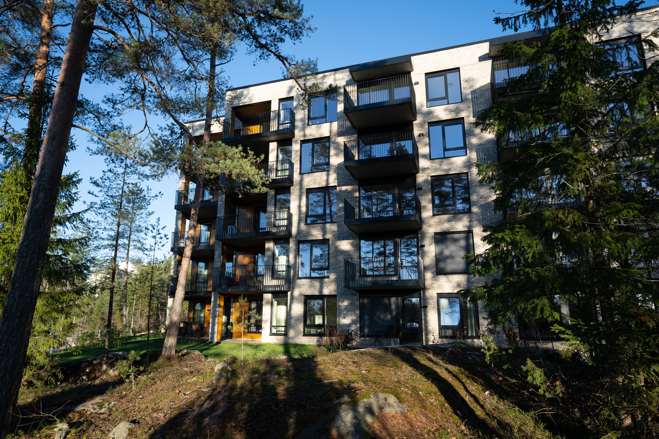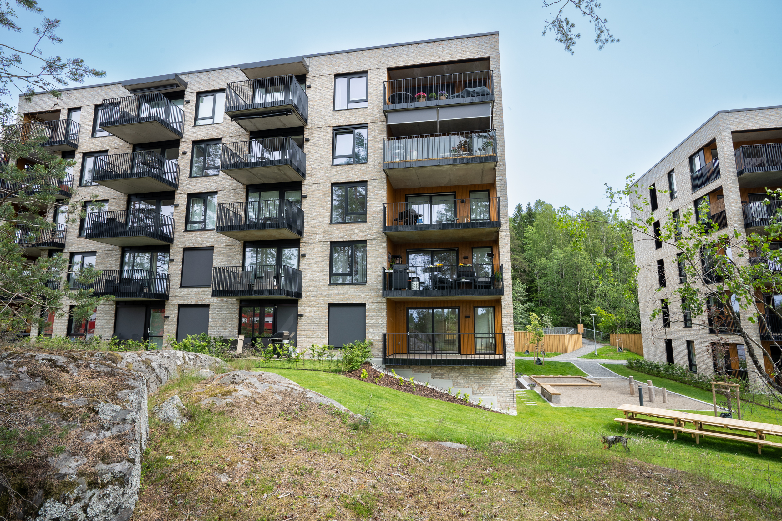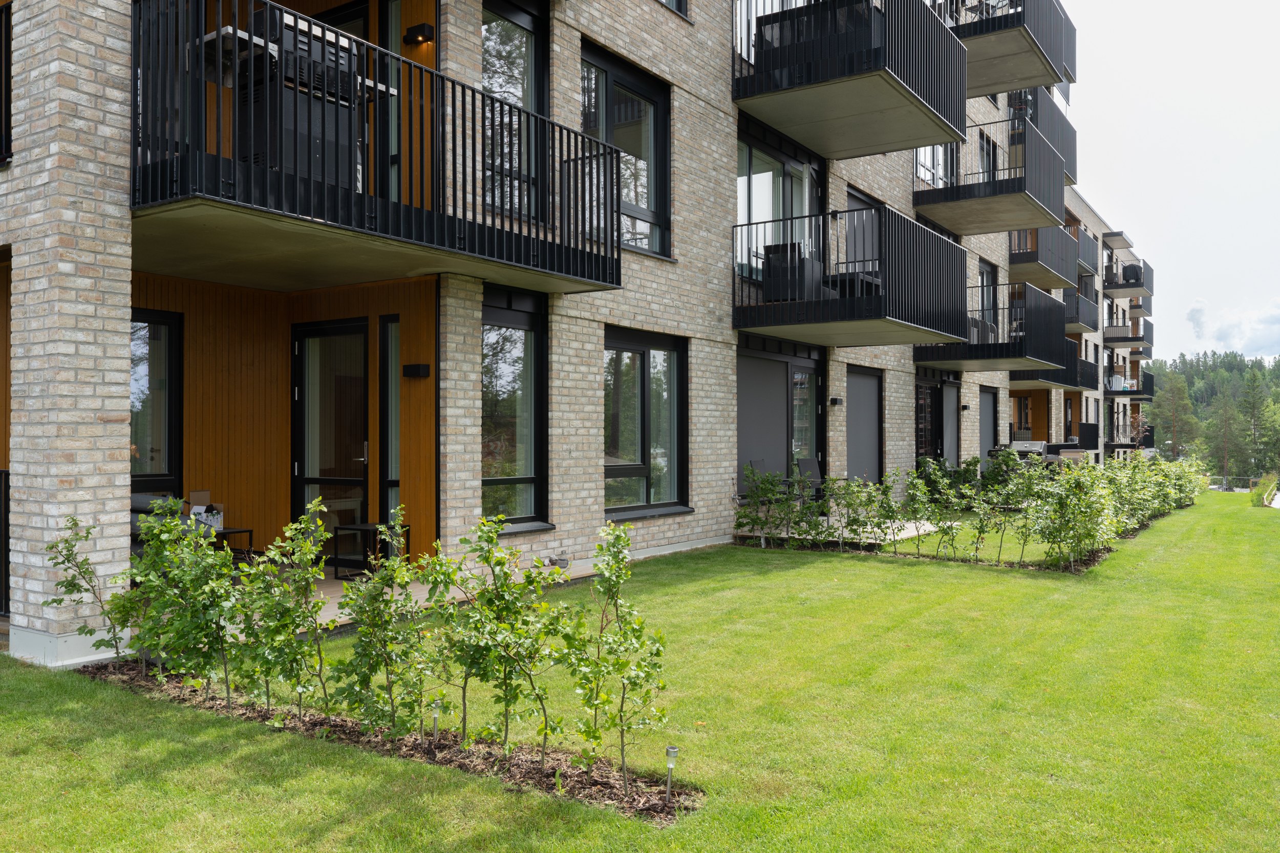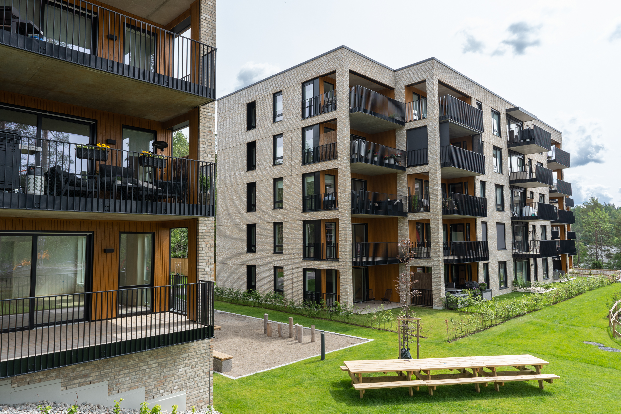 Alle illustrasjoner er utarbeidet basert på tegninger av fremtidige bygg. Illustrerte fasader vil kunne avvike fra ferdige bygg. Elementer og materialer i illustrasjonene kan avvike fra standardleveranse. Øvrige bygg, beplantning, vegetasjon og fellesarealer er ikke endelig prosjektert.