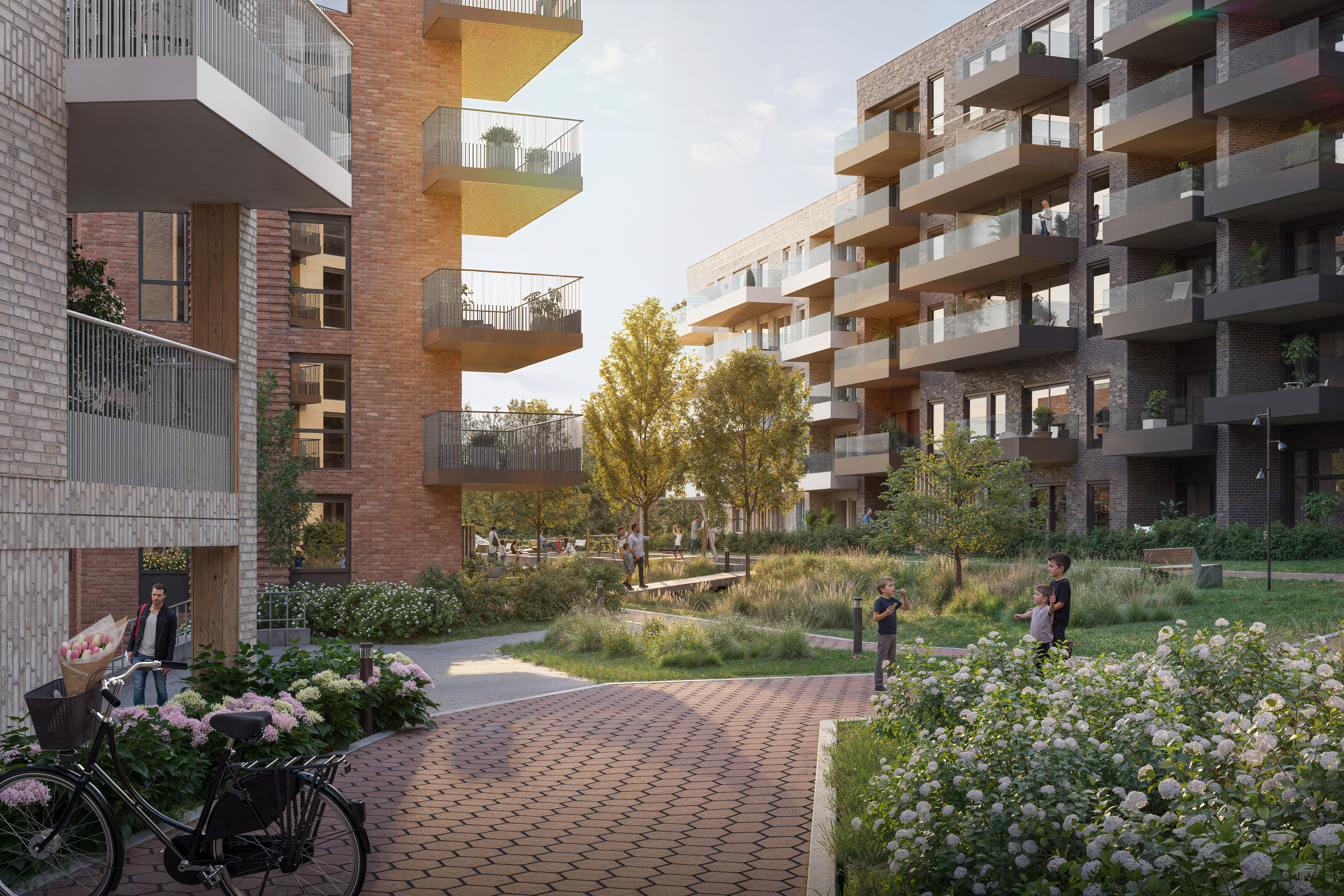 Prosjektet får flere felles takterrasser som inviterer til sosiale sammenkomster, utsikt og fellesskap - naturlige samlingspunkter som gir Rådhushagen et levende og inkluderende bomiljø.