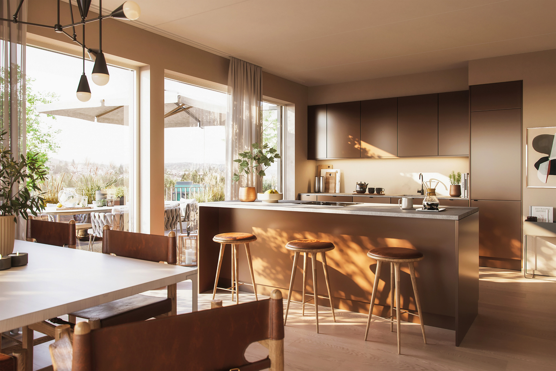 I en begrenset periode spanderer vi hvitevarepakke på kjøkken ved kjøp av ny leilighet i alle boligprosjektene på Skårerbyen.