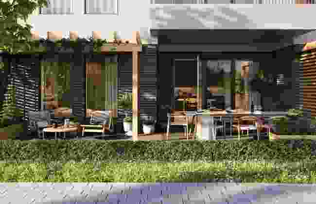 De seks nye husene i Gårdskvartalet vil fordeles rundt to felles gårdstun, med aktivitetstilbud og tilrettelegging for godt naboskap. I tillegg til fellesområdene ute byr vi på praktiske fellesområder inne, hvor boligeierne deler lokaler for både felles og private arrangement.