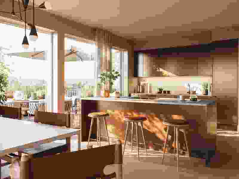 De seks nye husene i Gårdskvartalet vil fordeles rundt to felles gårdstun, med aktivitetstilbud og tilrettelegging for godt naboskap. I tillegg til fellesområdene ute byr vi på praktiske fellesområder inne, hvor boligeierne deler lokaler for både felles og private arrangement.