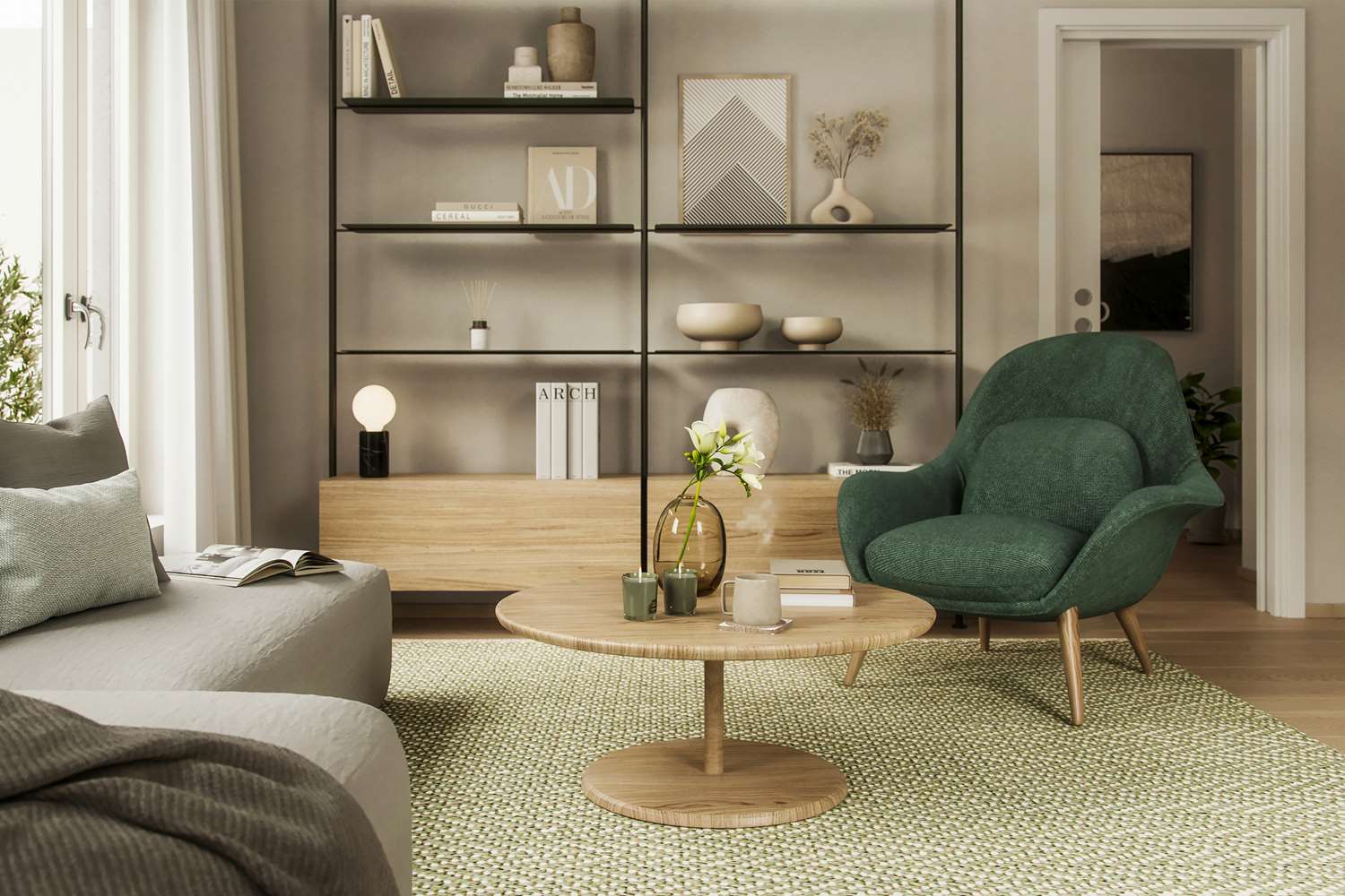 Leilighetene bygges etter siste tekniske standard som gir et godt inneklima og lave energikostnader. Leilighetene får store vindusflater og generøs takhøyde. Ved kjøp innen tilvalgsfristen kan man kostnadsfritt velge mellom tre interiørkonsepter, inkludert kjøkken og bad.