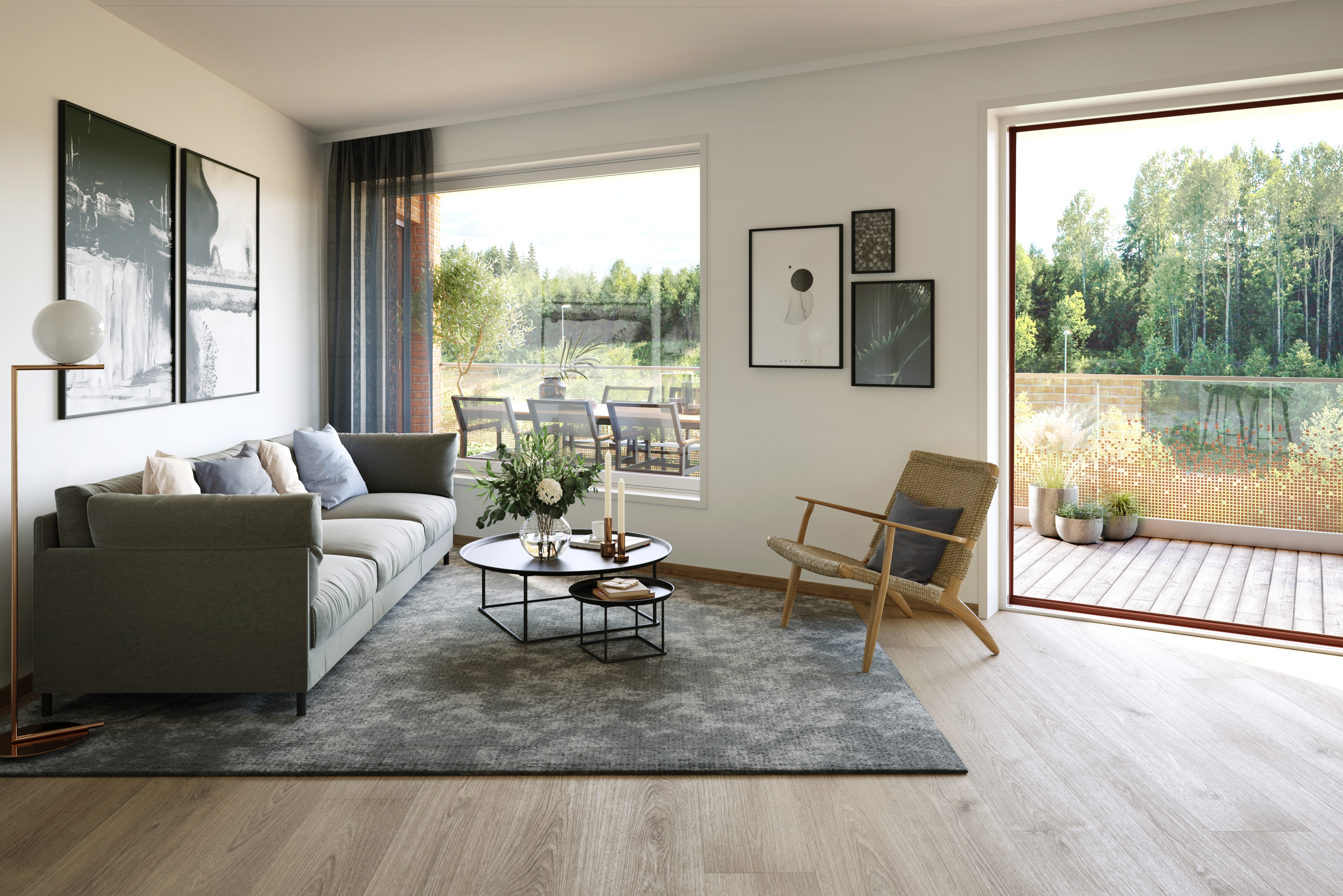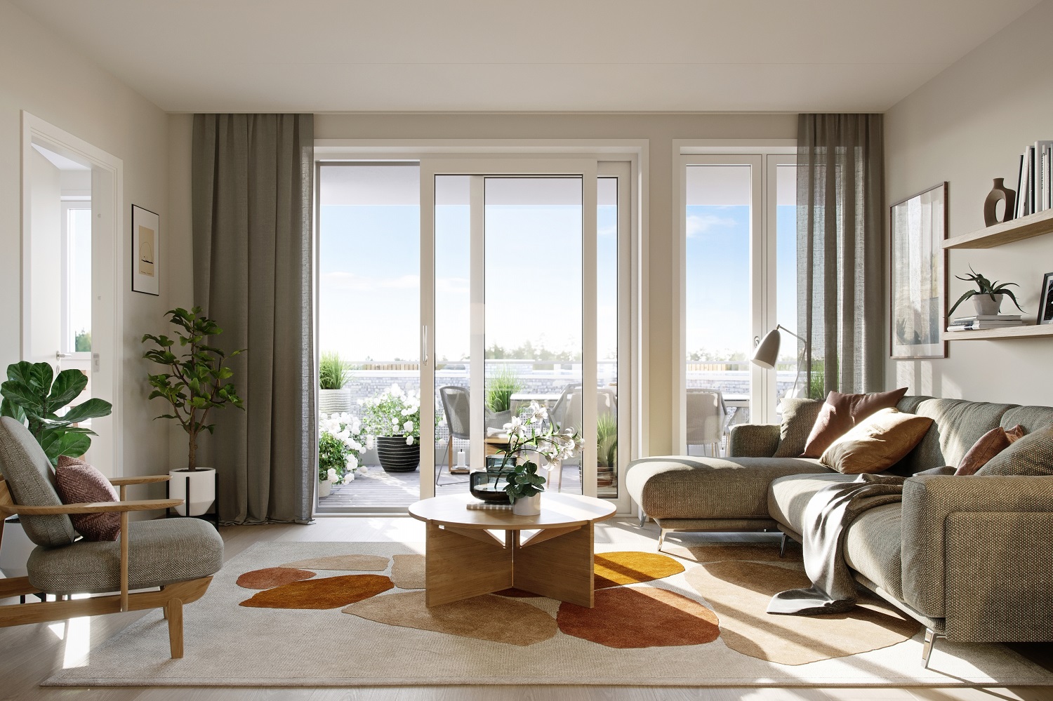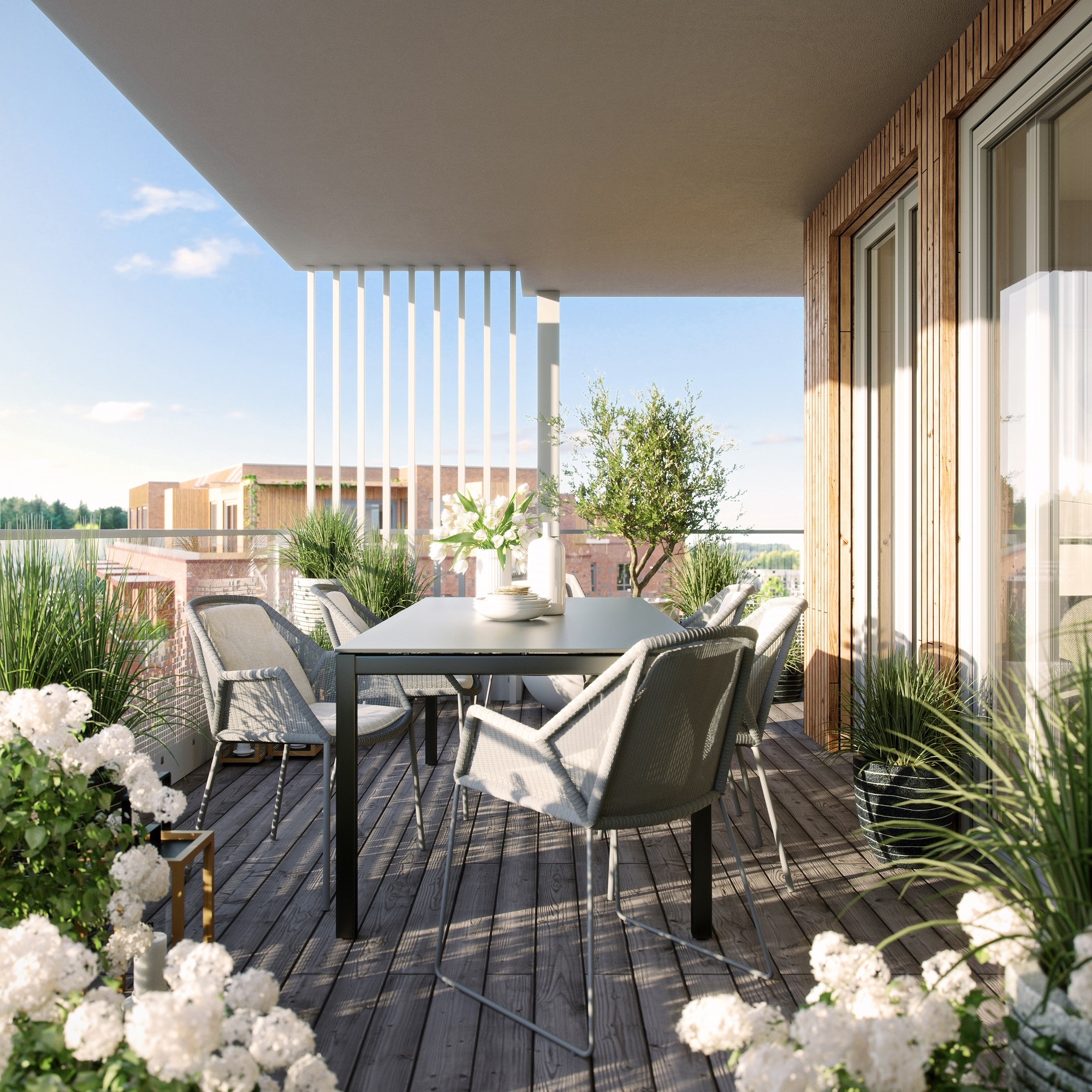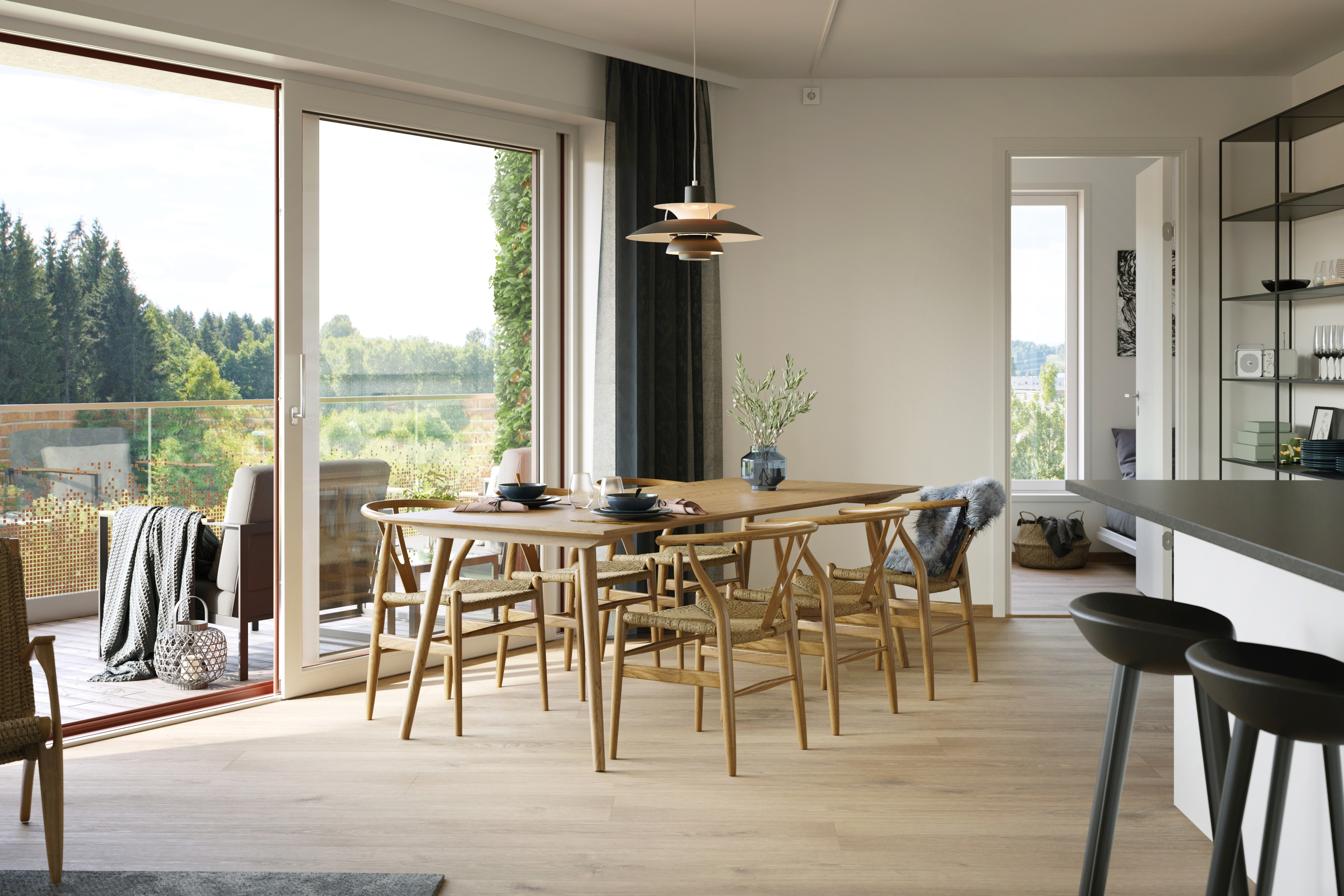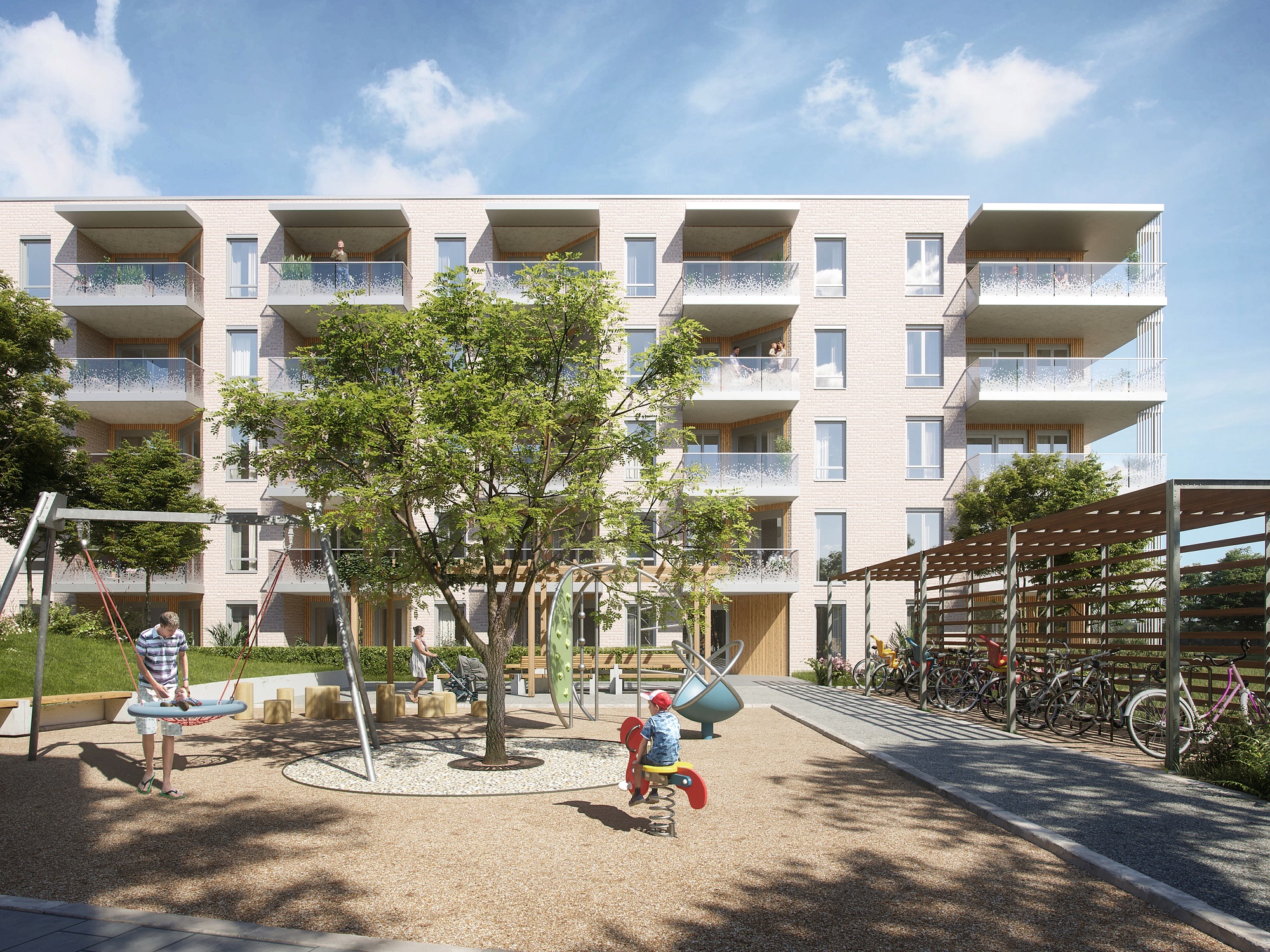 Alle illustrasjoner er utarbeidet basert på tegninger av fremtidige bygg. Illustrerte fasader vil kunne avvike fra ferdige bygg. Elementer og materialer i illustrasjonene kan avvike fra standardleveranse. Øvrige bygg, beplantning, vegetasjon og fellesarealer er ikke endelig prosjektert.