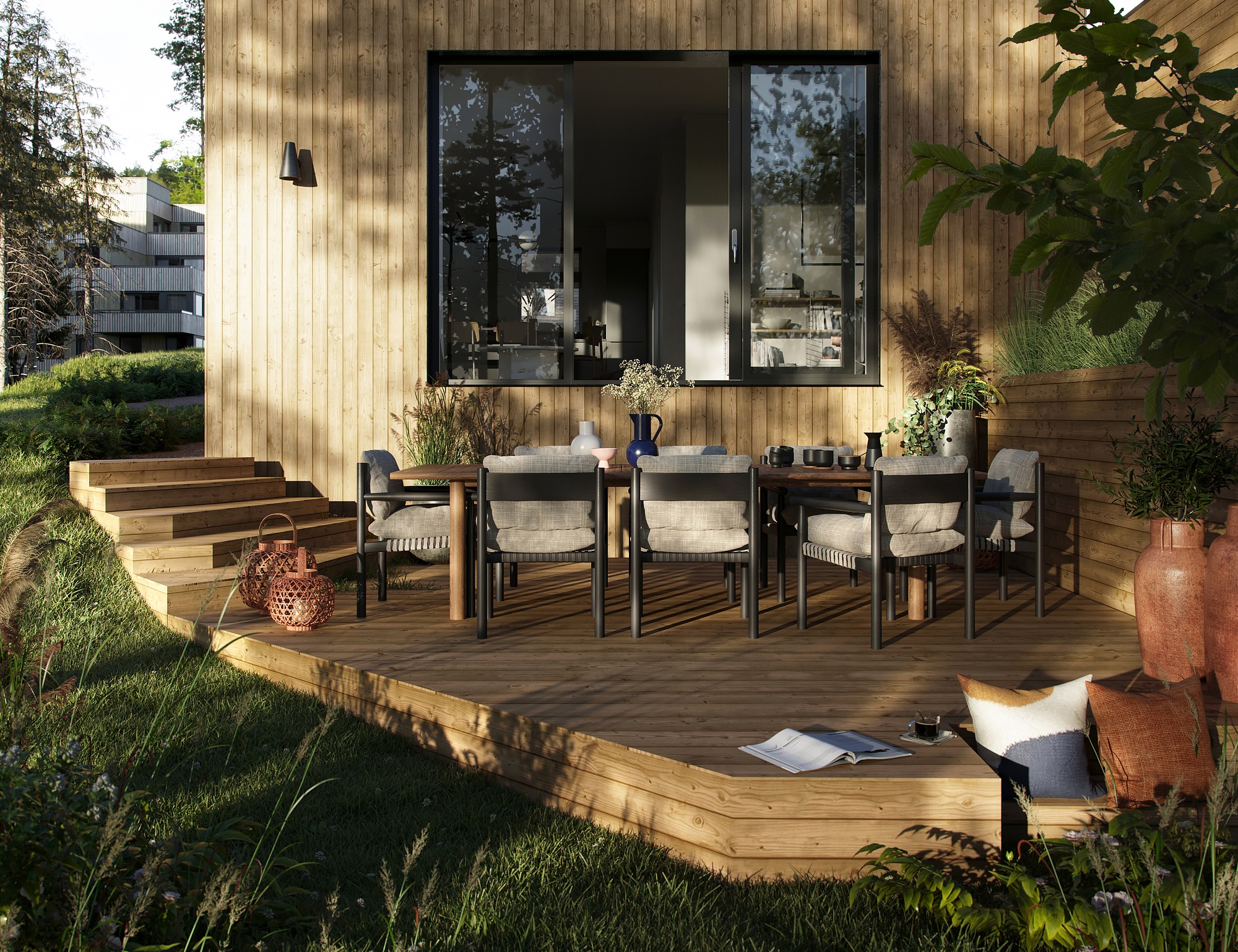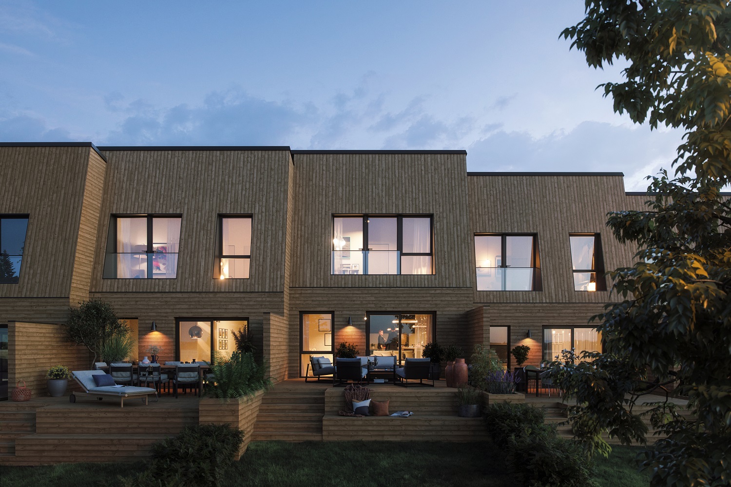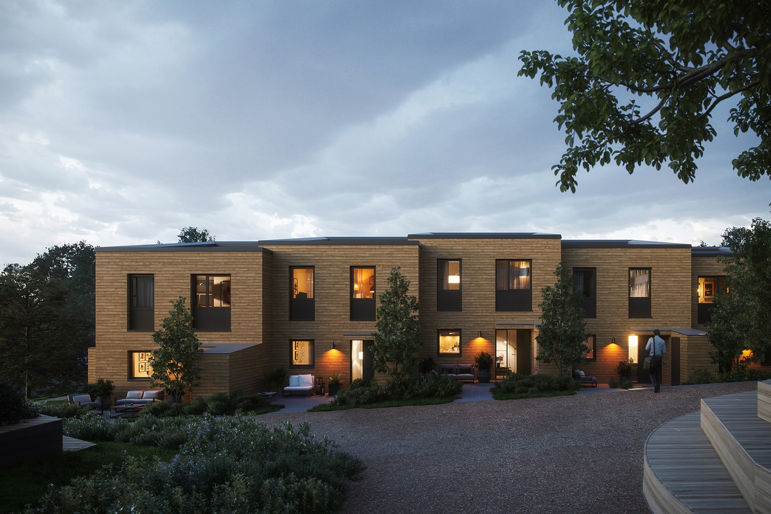 Alle illustrasjoner er utarbeidet basert på tegninger av fremtidige bygg. Illustrerte fasader vil kunne avvike fra ferdige bygg. Elementer og materialer i illustrasjonene kan avvike fra standardleveranse. Øvrige bygg, beplantning, vegetasjon og fellesarealer er ikke endelig prosjektert.