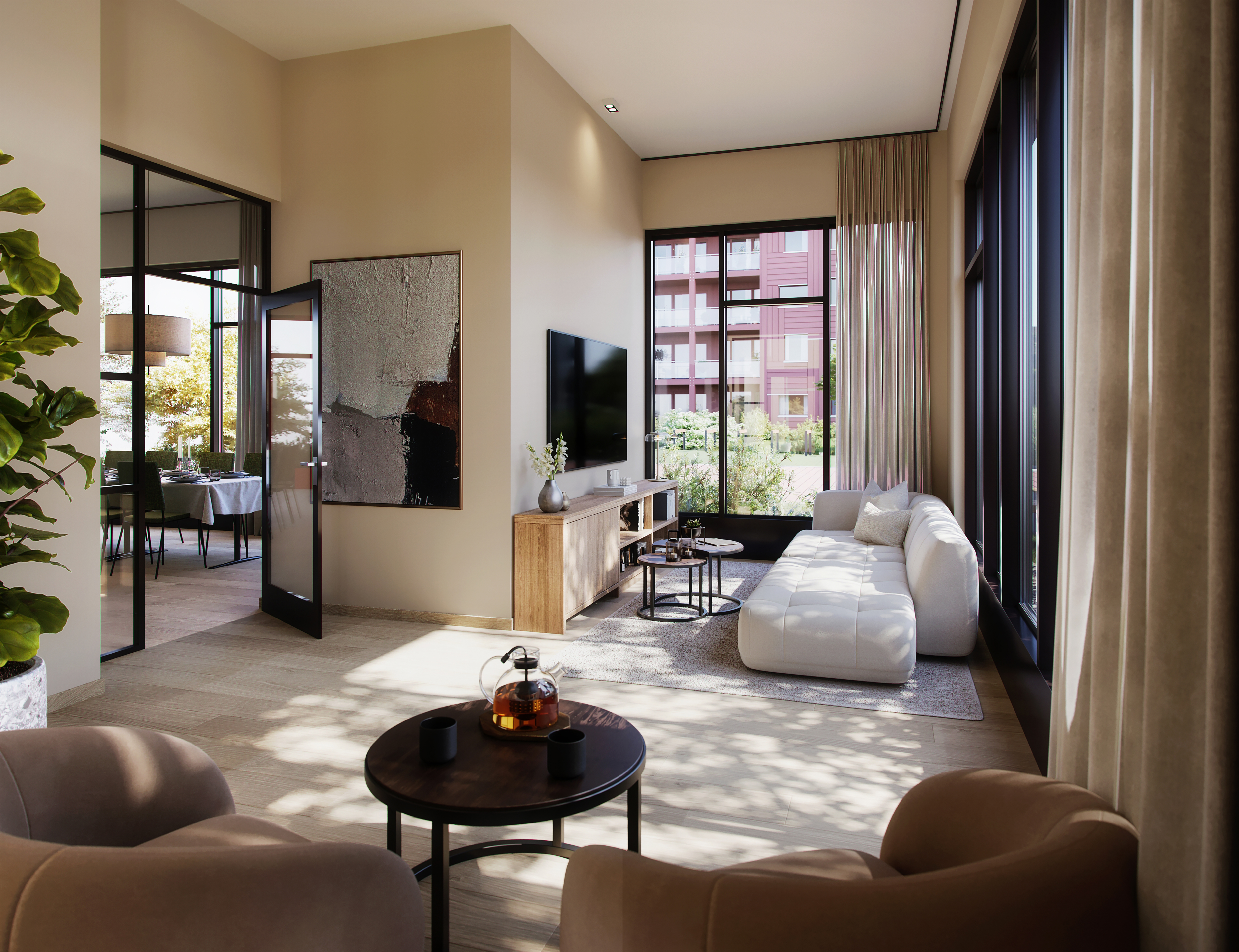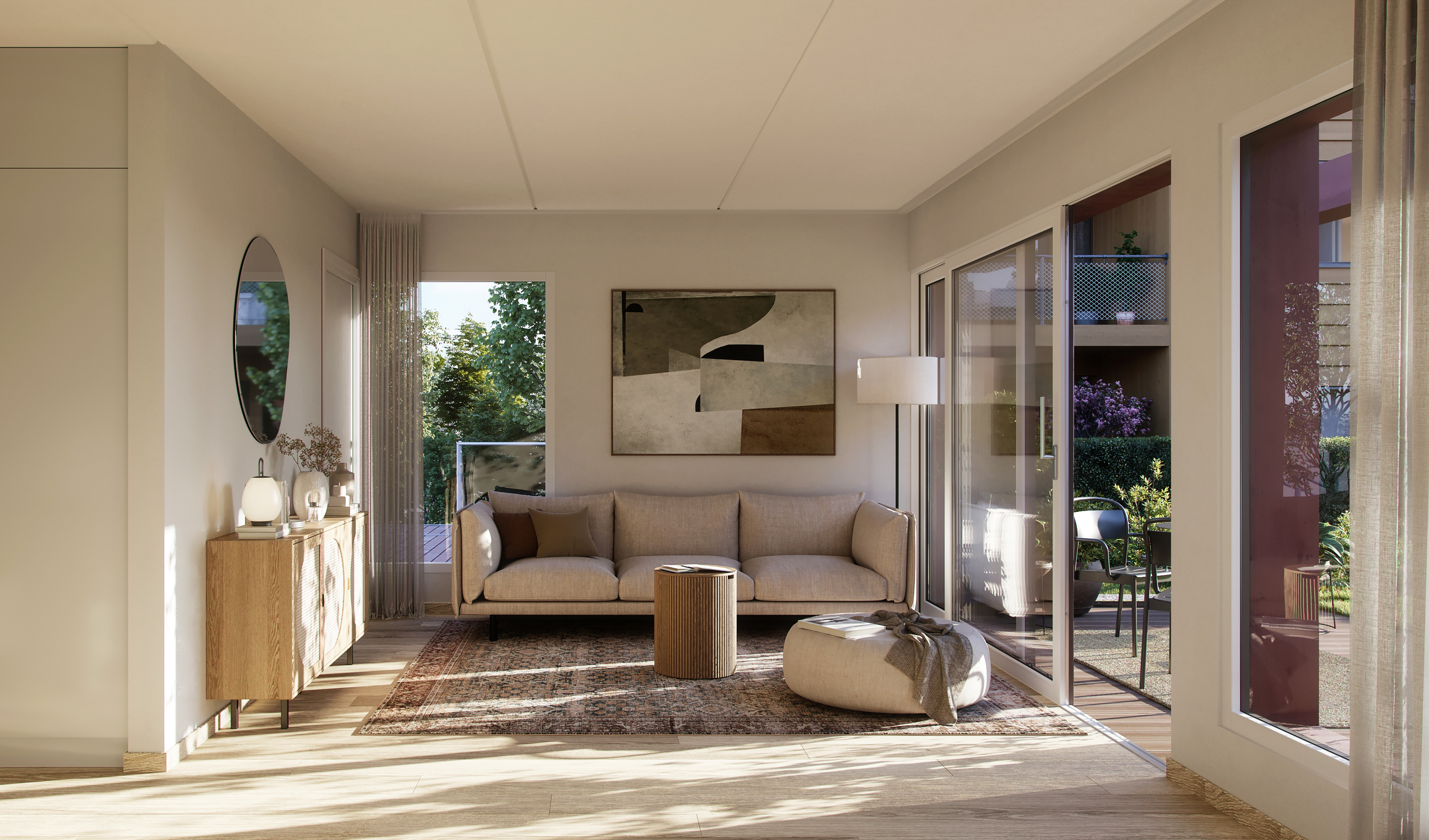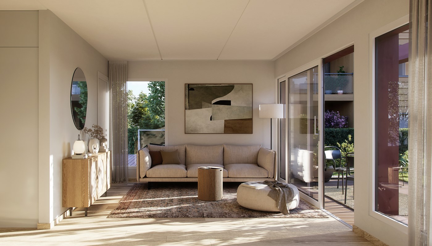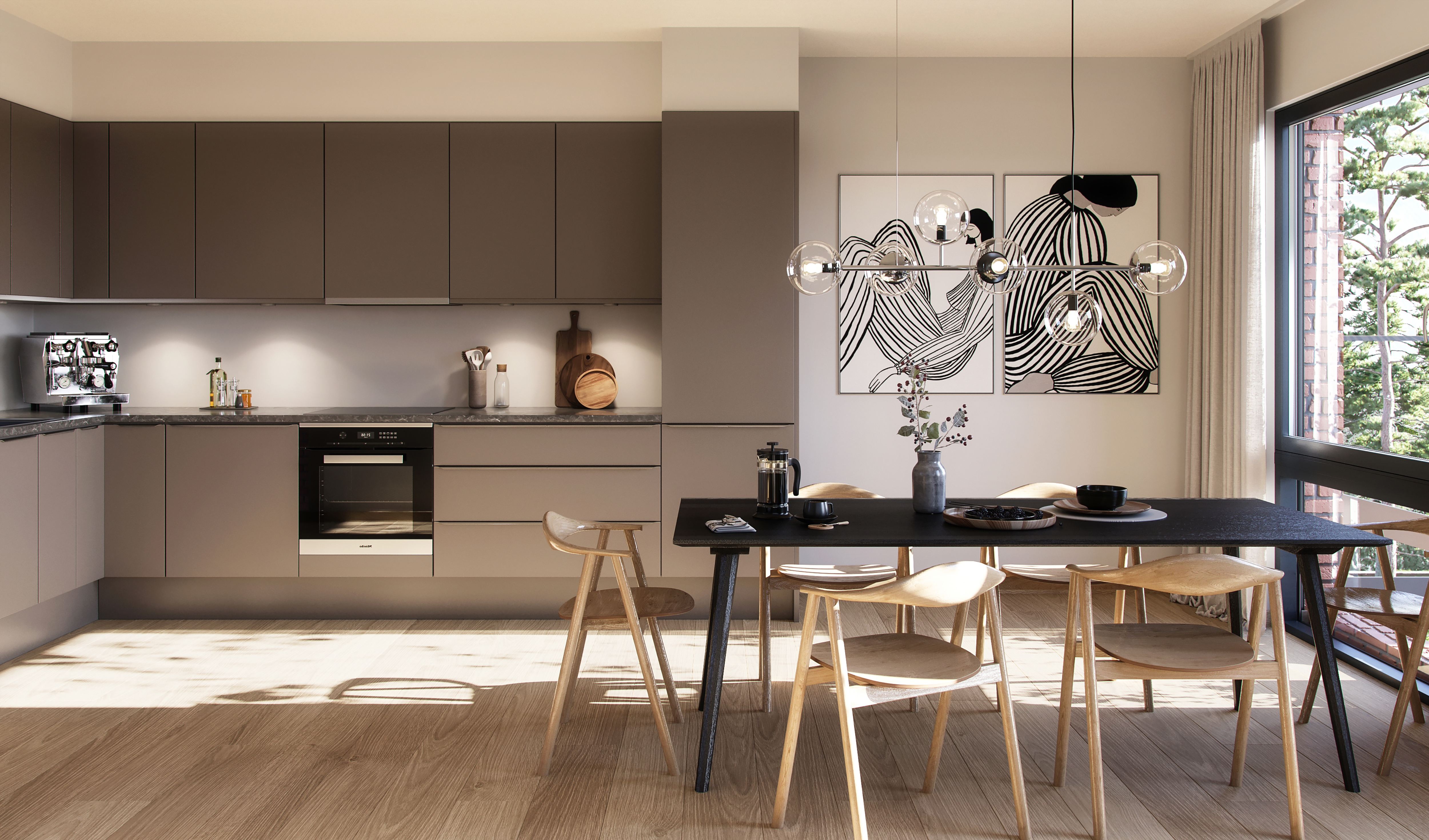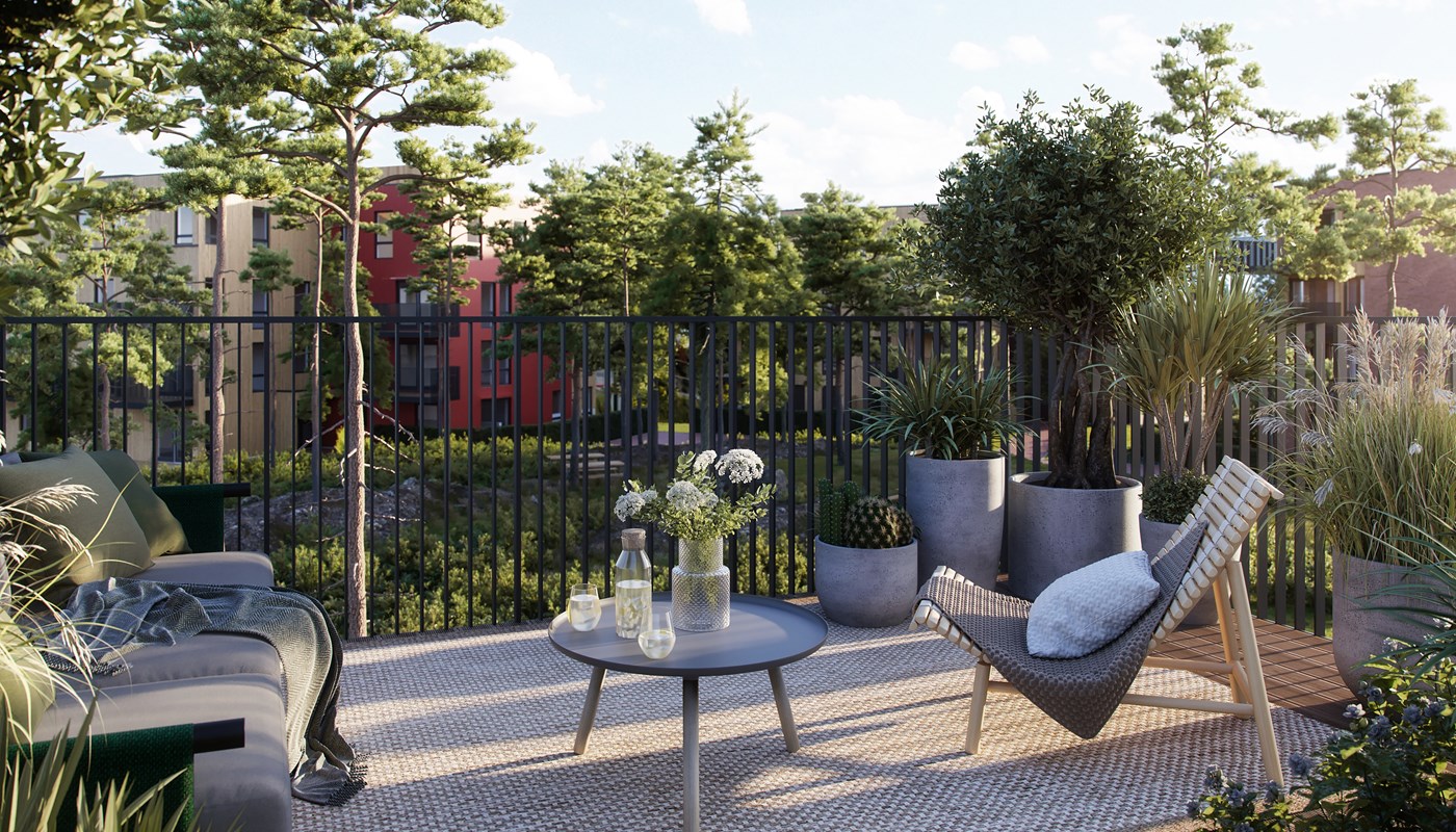 Alle illustrasjoner er utarbeidet basert på tegninger av fremtidige bygg. Illustrerte fasader vil kunne avvike fra ferdige bygg. Elementer og materialer i illustrasjonene kan avvike fra standardleveranse. Øvrige bygg, beplantning, vegetasjon og fellesarealer er ikke endelig prosjektert.