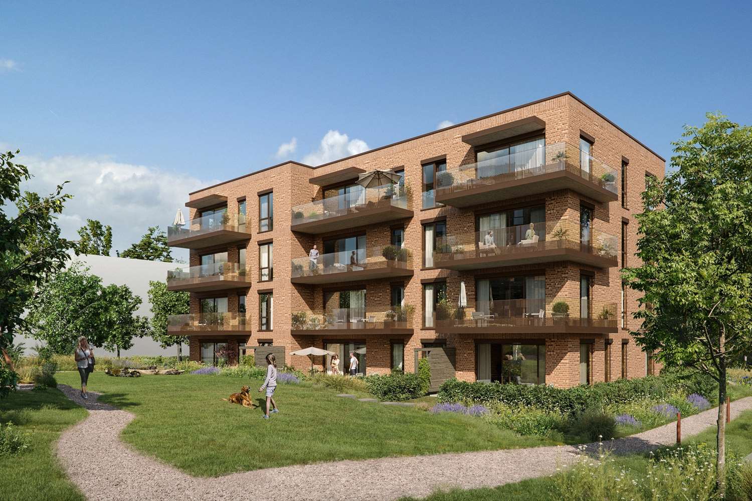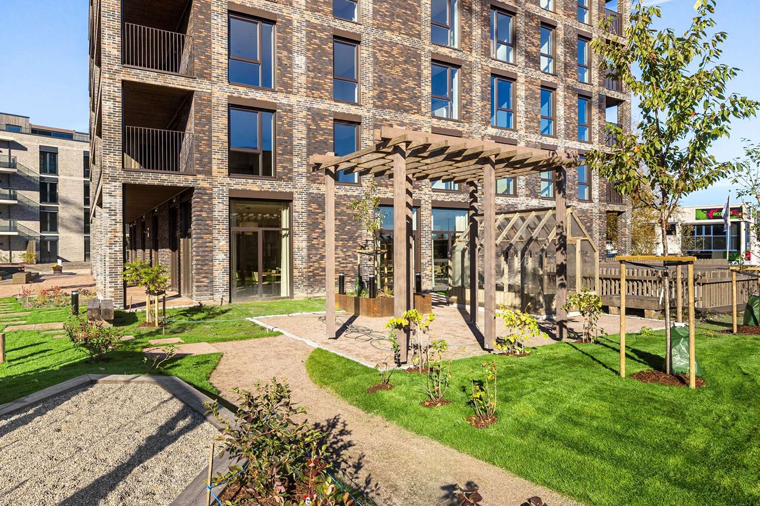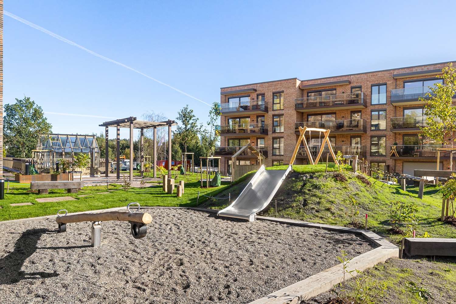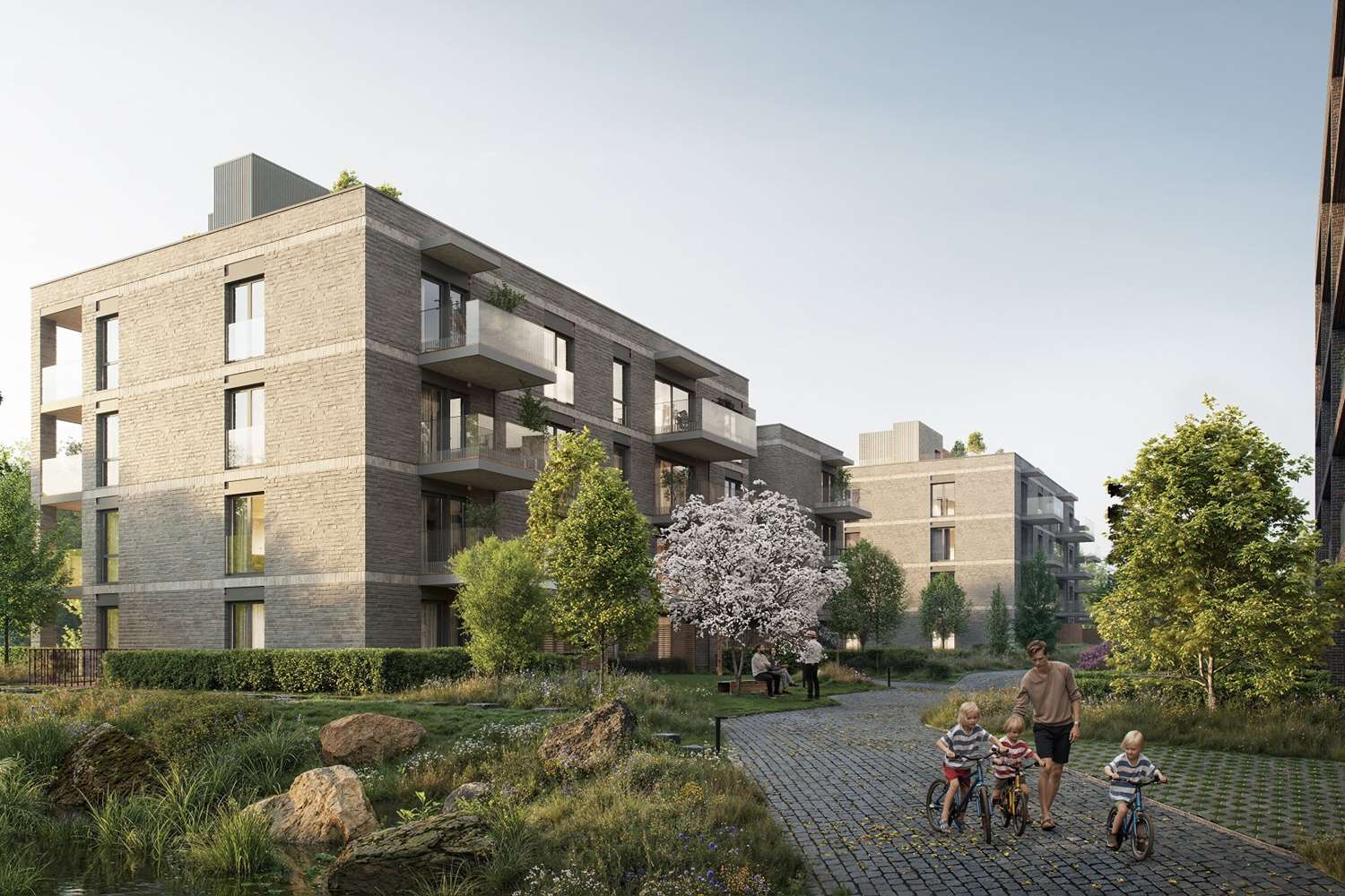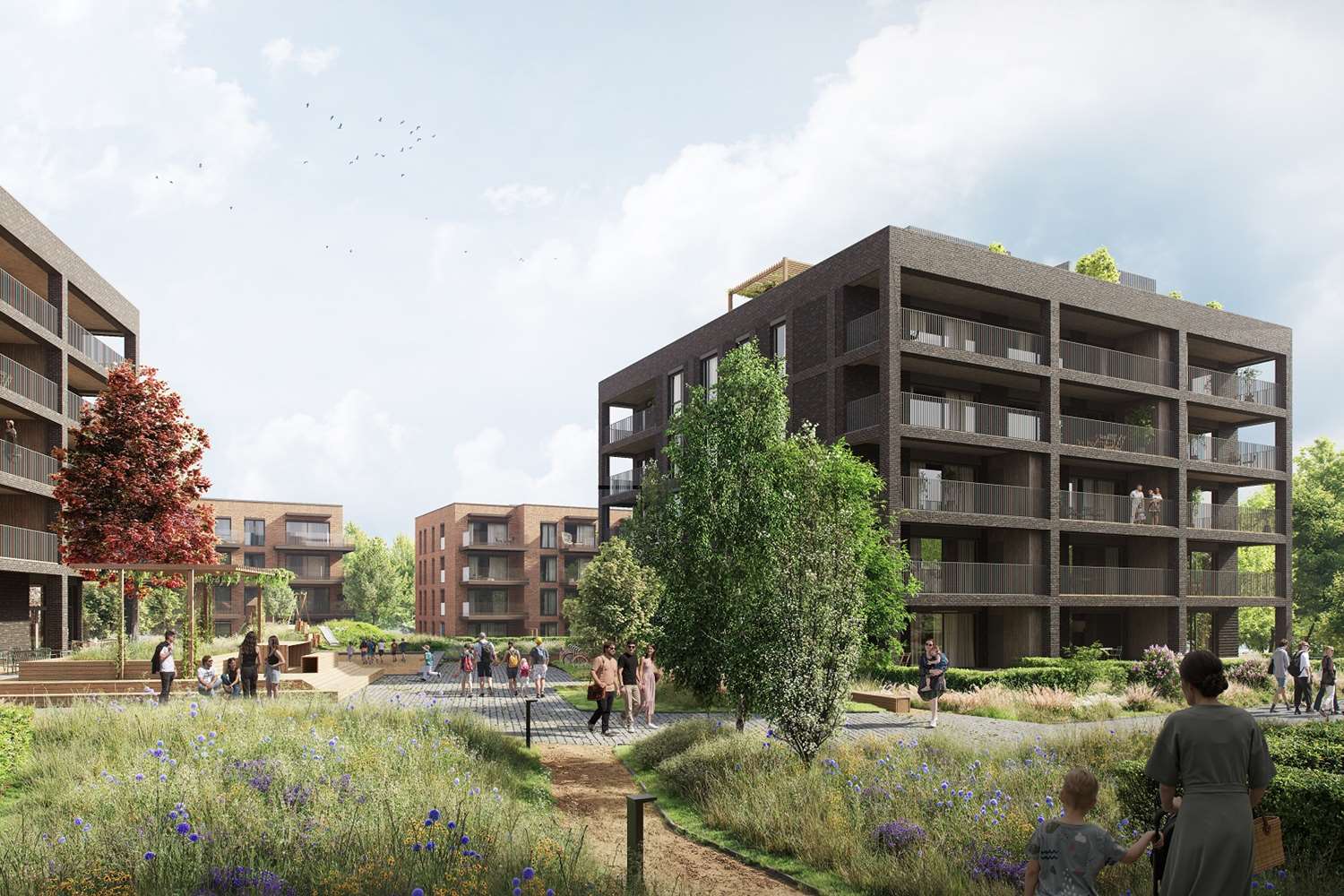 Det vil bli et bilfritt utemiljø og det skal etableres flotte, parkmessige utearealer.