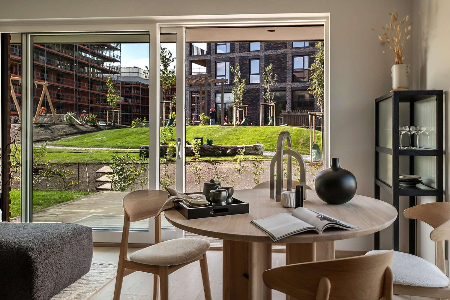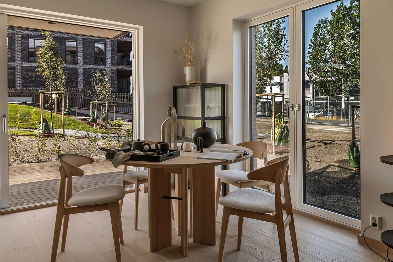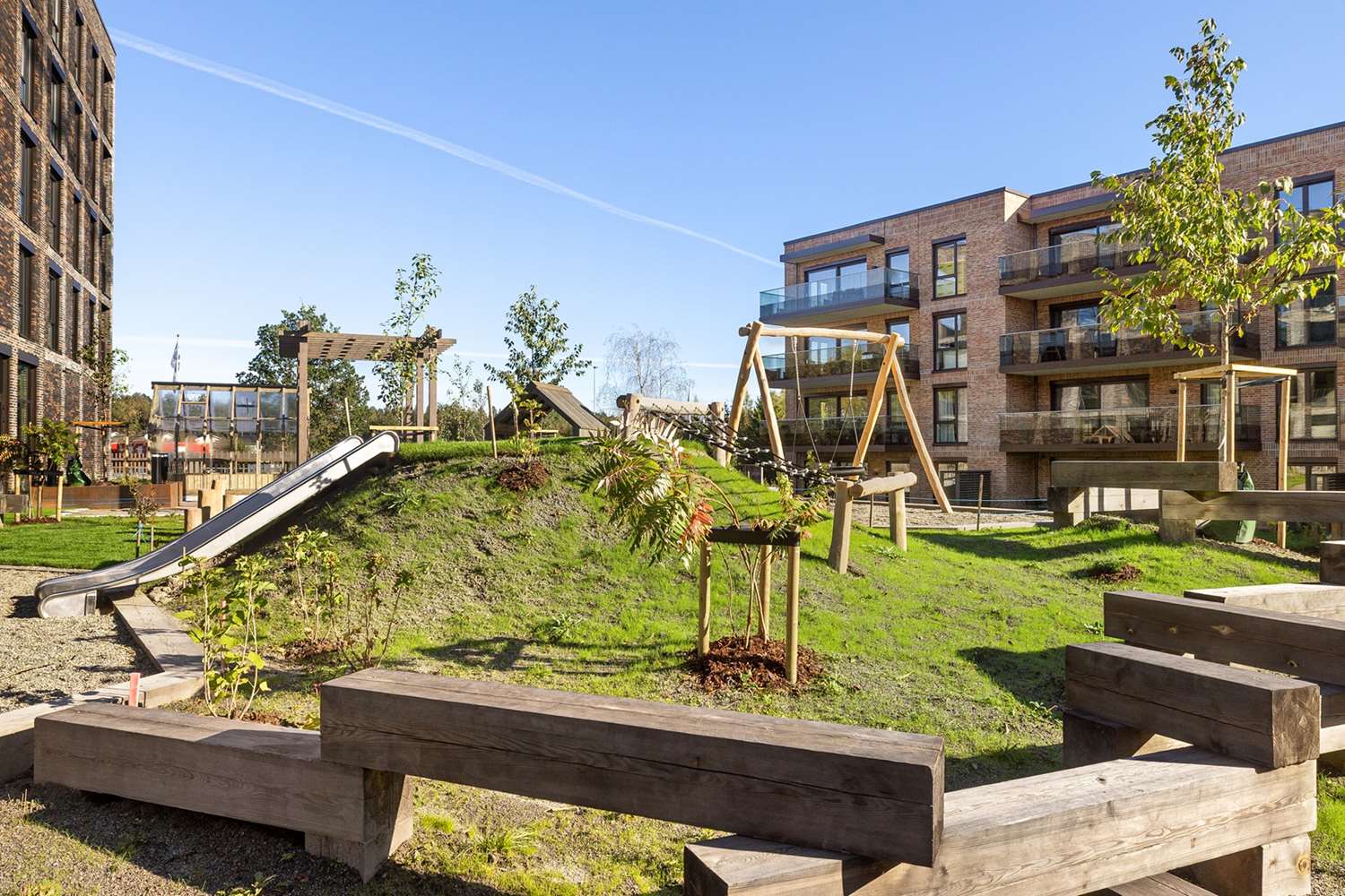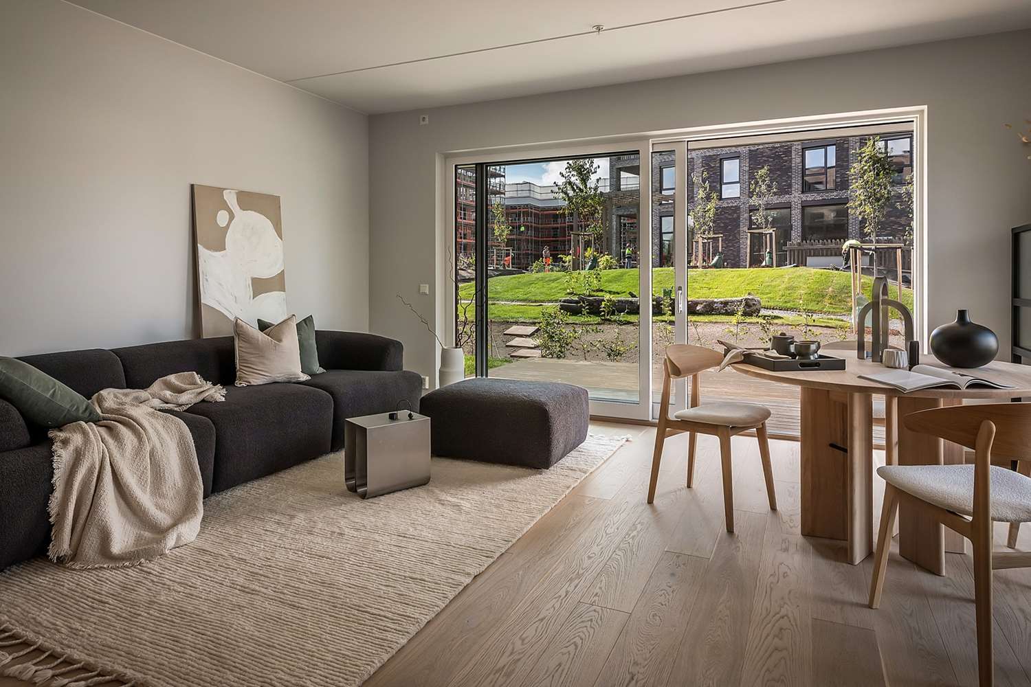 Det vil bli et bilfritt utemiljø og det skal etableres flotte, parkmessige utearealer.