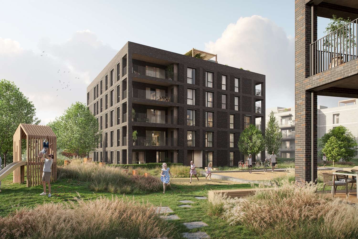 Det nye prosjektet tegnes av AART Arkitekter og uteområdene rundt husene tegnes av Studio Oslo Landskapsarkitekter.