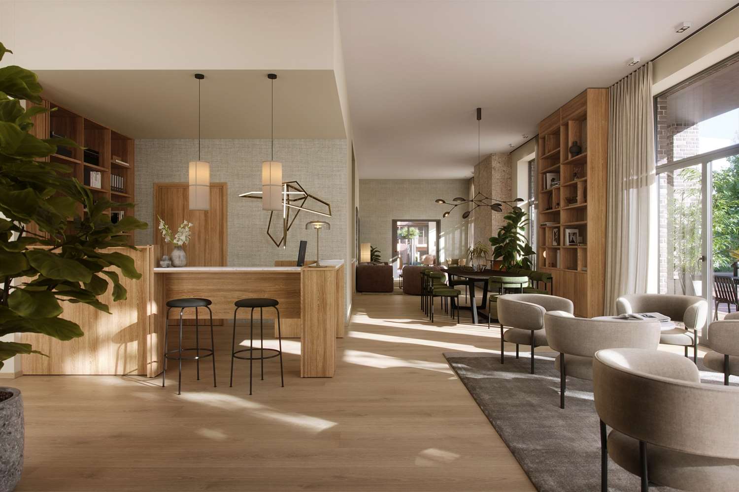 Plussboliger® fra Selvaag Bolig er leiligheter av høy standard. I tilknytning til leilighetene bygger vi et serviceområde som beboerne har eksklusiv tilgang til. Her finner man lounge med kaffebar og ferske aviser, velutstyrt treningsrom, flere tilgjengelige gjesterom, møterom, selskapslokale med storkjøkken og betjent resepsjon.