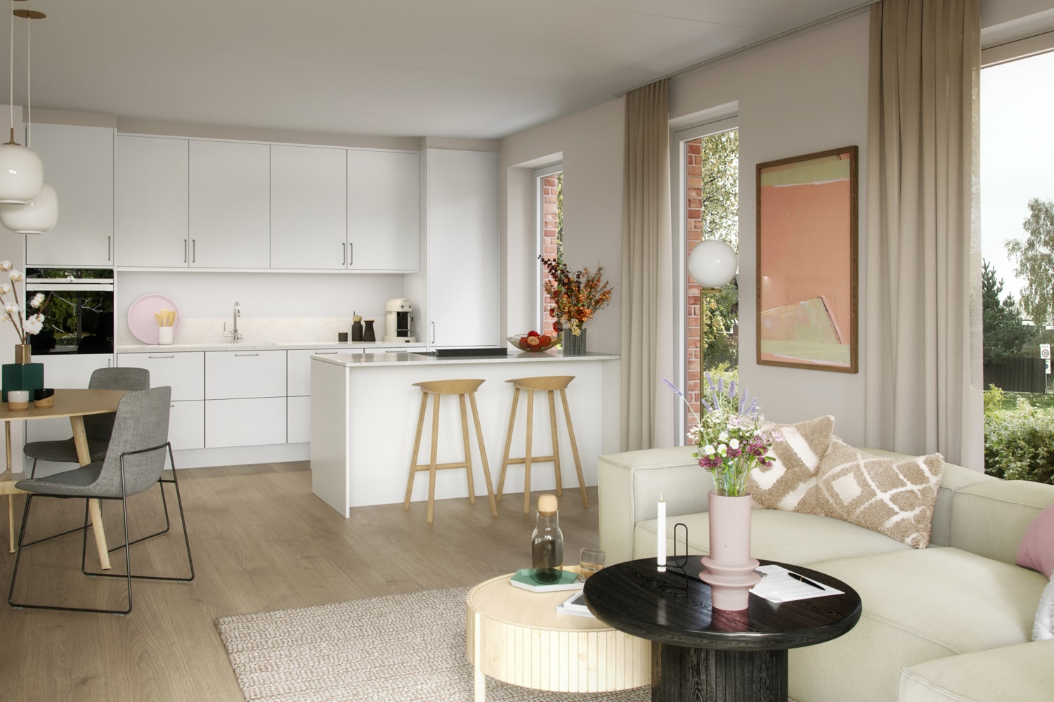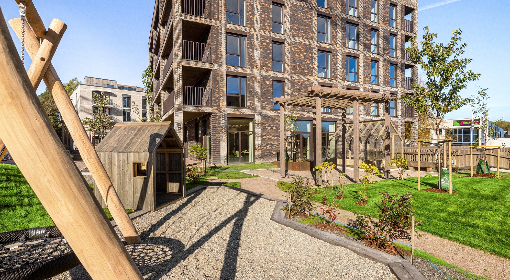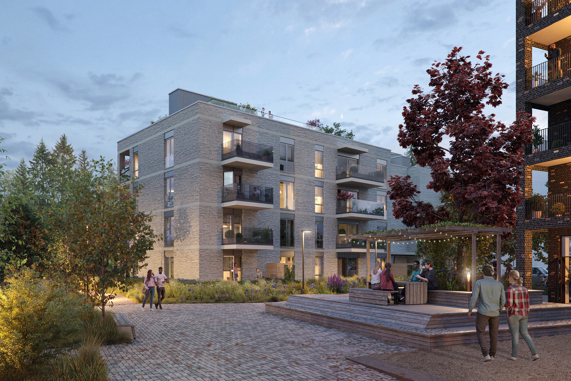 Alle illustrasjoner er utarbeidet basert på tegninger av fremtidige bygg. Illustrerte fasader vil kunne avvike fra ferdige bygg. Elementer og materialer i illustrasjonene kan avvike fra standardleveranse. Øvrige bygg, beplantning, vegetasjon og fellesarealer er ikke endelig prosjektert.