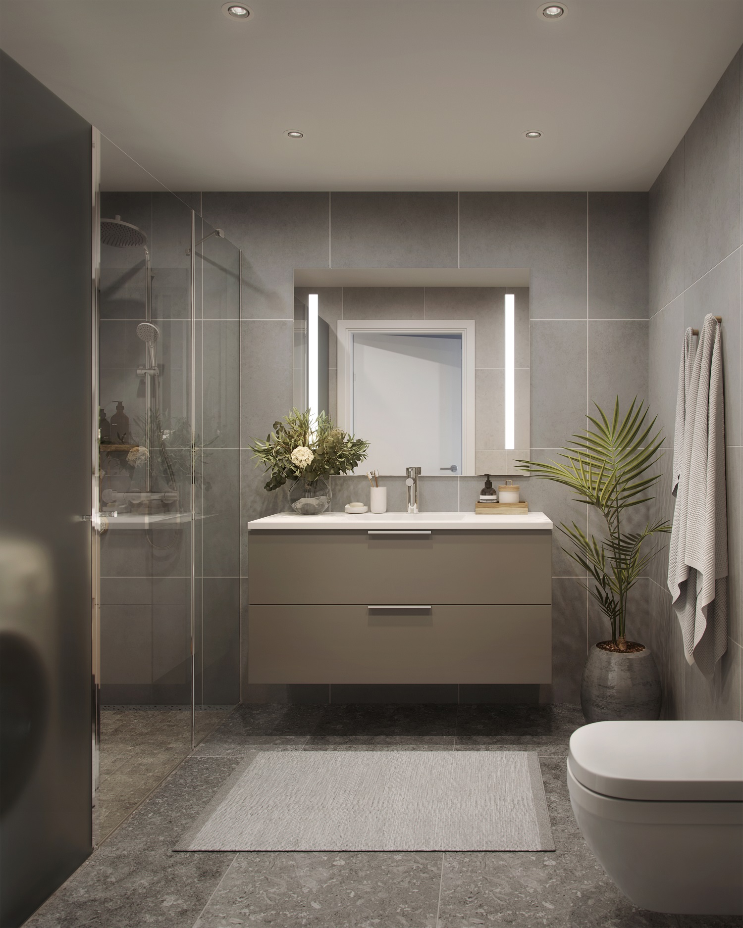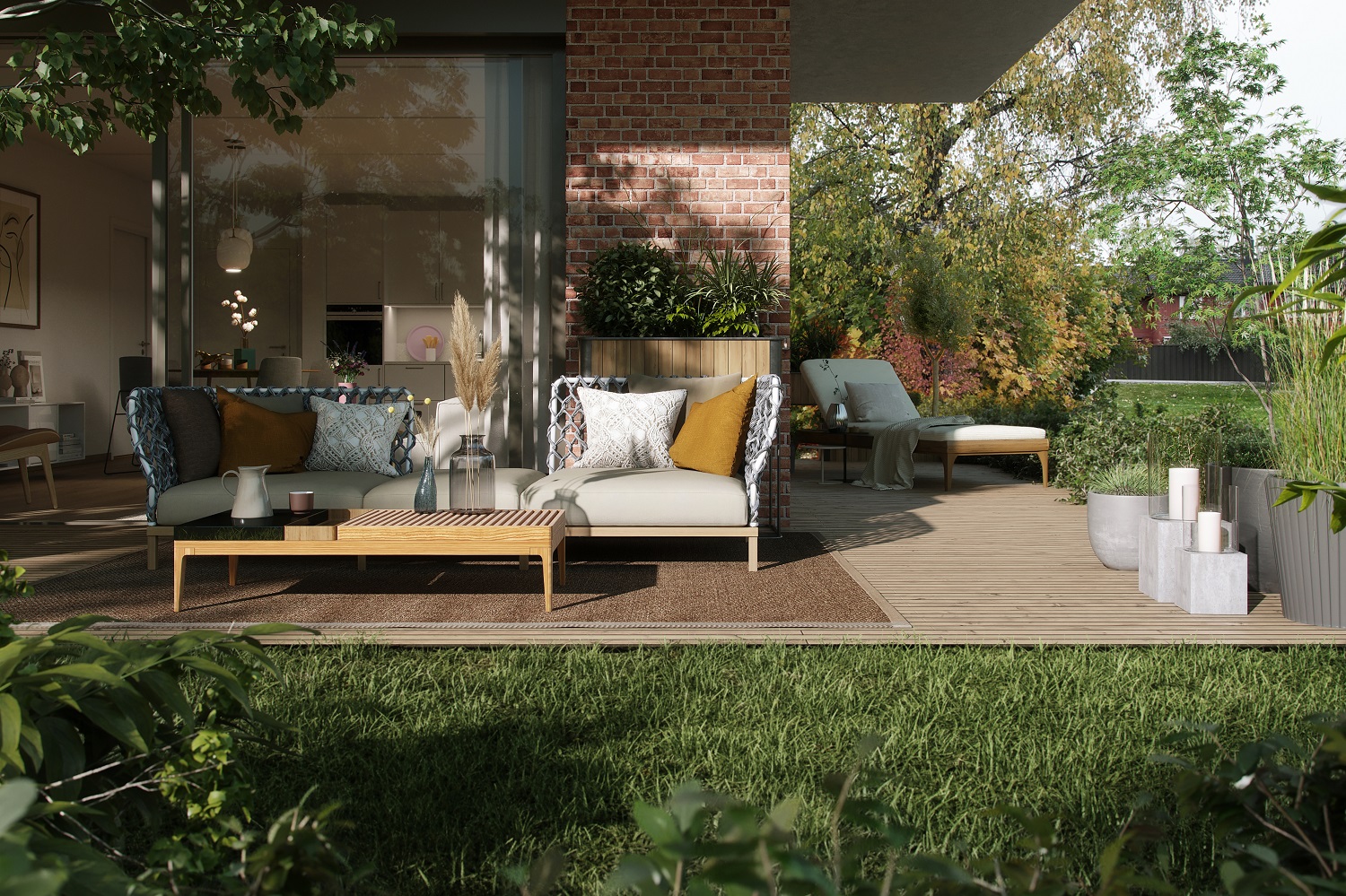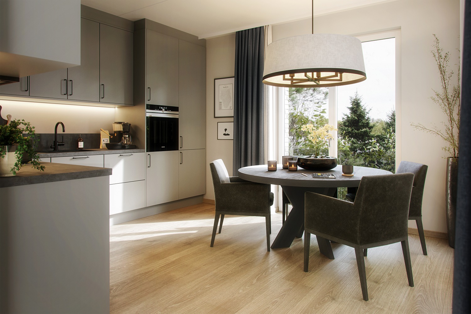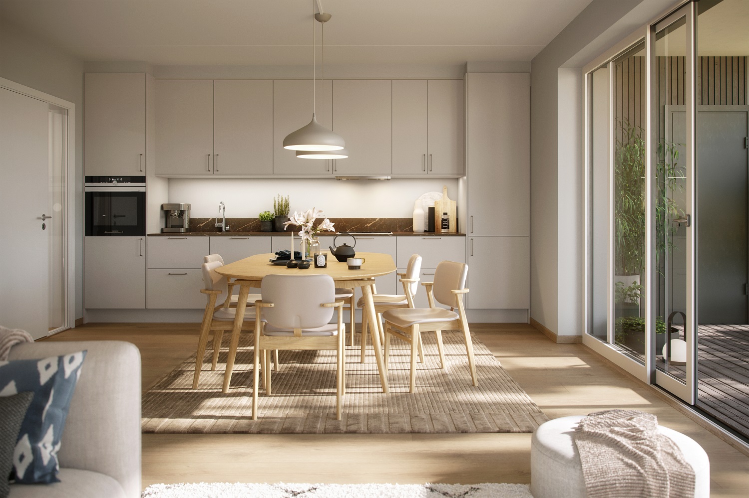 Alle illustrasjoner er utarbeidet basert på tegninger av fremtidige bygg. Illustrerte fasader vil kunne avvike fra ferdige bygg. Elementer og materialer i illustrasjonene kan avvike fra standardleveranse. Øvrige bygg, beplantning, vegetasjon og fellesarealer er ikke endelig prosjektert.