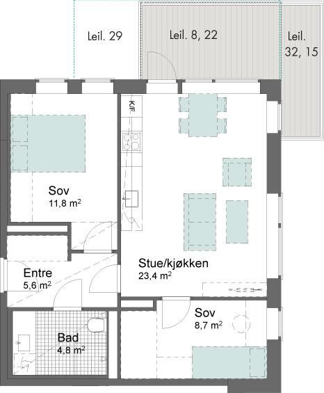 3-roms leilighet