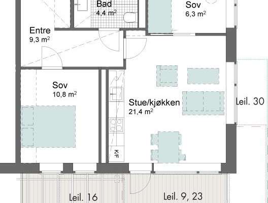 Luftig 2-roms med 2,60m takhøyde, store vindusflater lys en-stavs eikeparkett.