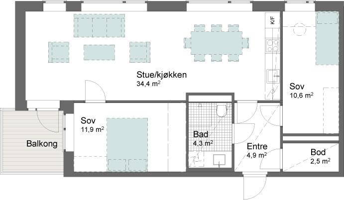 3-roms leilighet