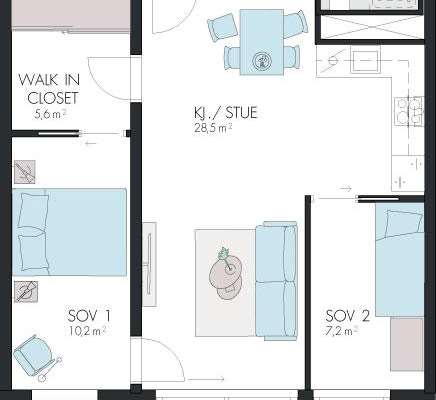 På Tribunen kan du velge mellom flere ulike varianter av 3-roms leiligheter. Det er 3-roms fra 59 til 69 kvm. Felles for alle er gode planløsninger med syd/sydvestvendte uteplasser.