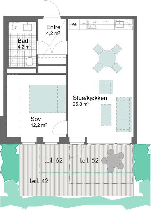 2-roms leilighet på bakkeplan