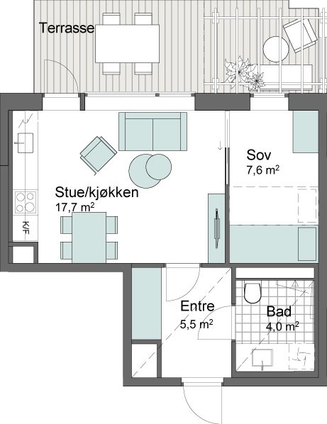 2-roms leilighet på bakkeplan