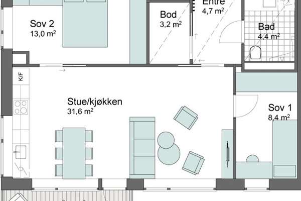 Luftig 3-roms leilighet! Vi bygger med 2,60 m takhøyde, store vindusflater og lys en-stavs eikeparkett.