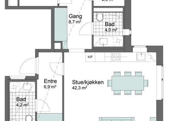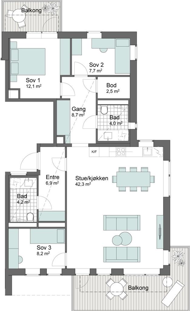 Luftig 4-roms leilighet! Vi bygger med 2,60 m takhøyde, store vindusflater og lys en-stavs eikeparkett.