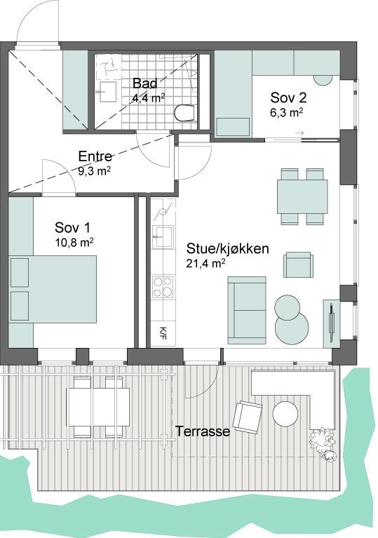Flott 3-roms med 2,60m takhøyde, store vindusflater lys en-stavs eikeparkett.
