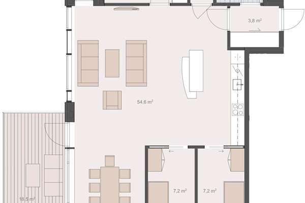 Stue med åpen kjøkkenløsning på 54,6 kvm. 3 soverom. Romslig bad med dusj og opplegg for vaskemaskin. Innvendig bod. Balkong på 18,5 kvm. Parkering i kjeller med heis opp til etasjene. Leilighet H0704 har ekstra takhøyde på 3 meter over store deler av leiligheten.