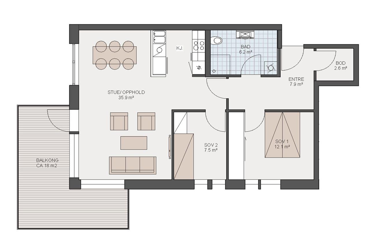 Lys hjørneleilighet med to soverom