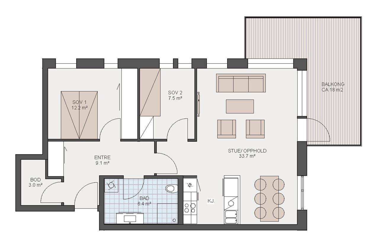 Lys hjørneleilighet med to soverom