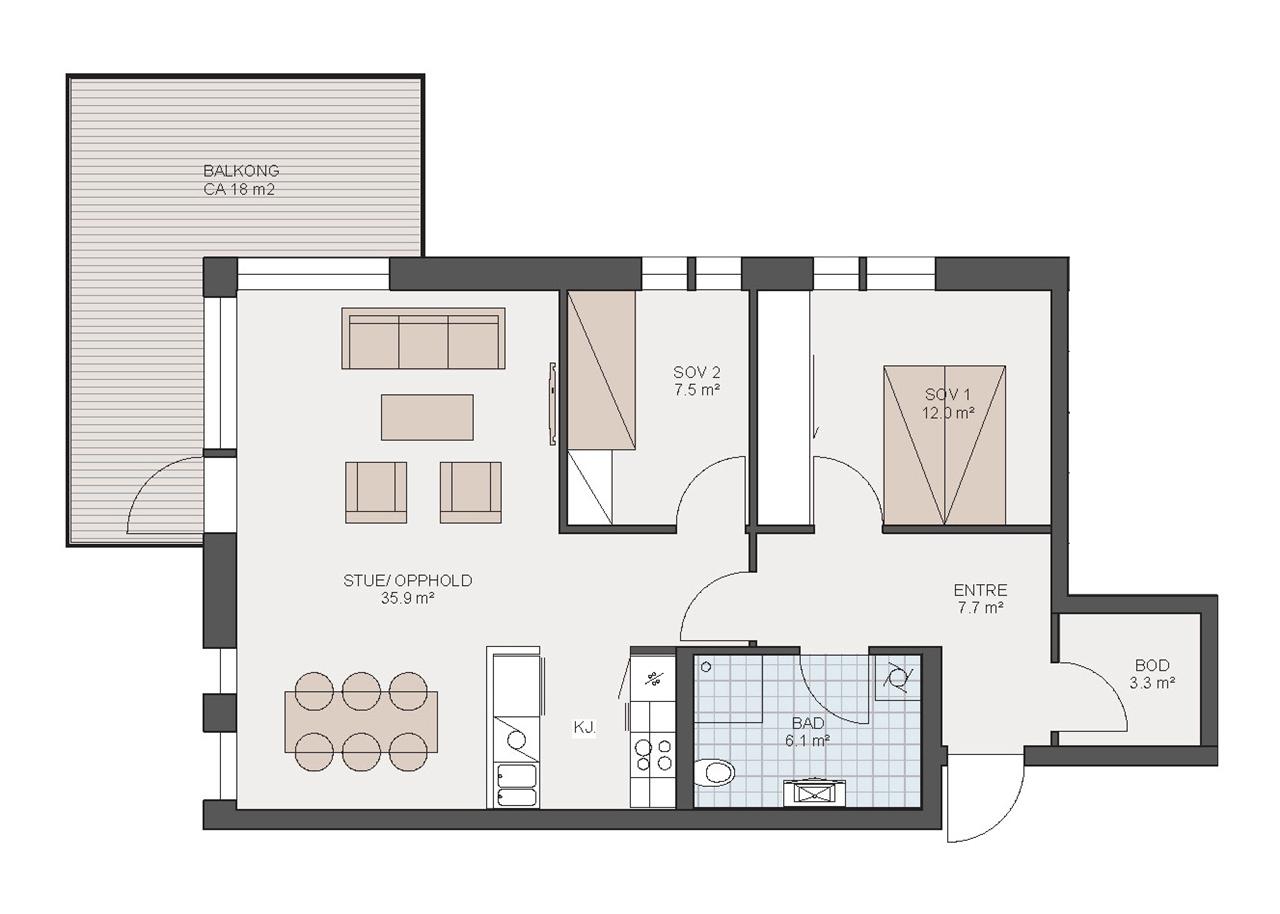 Stor entré med inngang til praktisk bod. Stort bad med dusjhjørne og opplegg for vaskemaskin og tørketrommel. Lys hjørnestue med store vindusflater og god plass til møblering. Fin kjøkkenløsning delvis skjermet mot stue med halvhøy vegg. Plass til stort spisebord i nisje foran kjøkken. Romslig hovedsoverom med skyvedørsgarderobe. Stor hjørnebalkong med utgang fra stuen. Nå får du også med båtplass på kjøpet.
