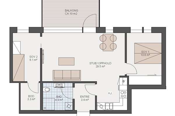 Arealeffektiv leilighet med to soverom
