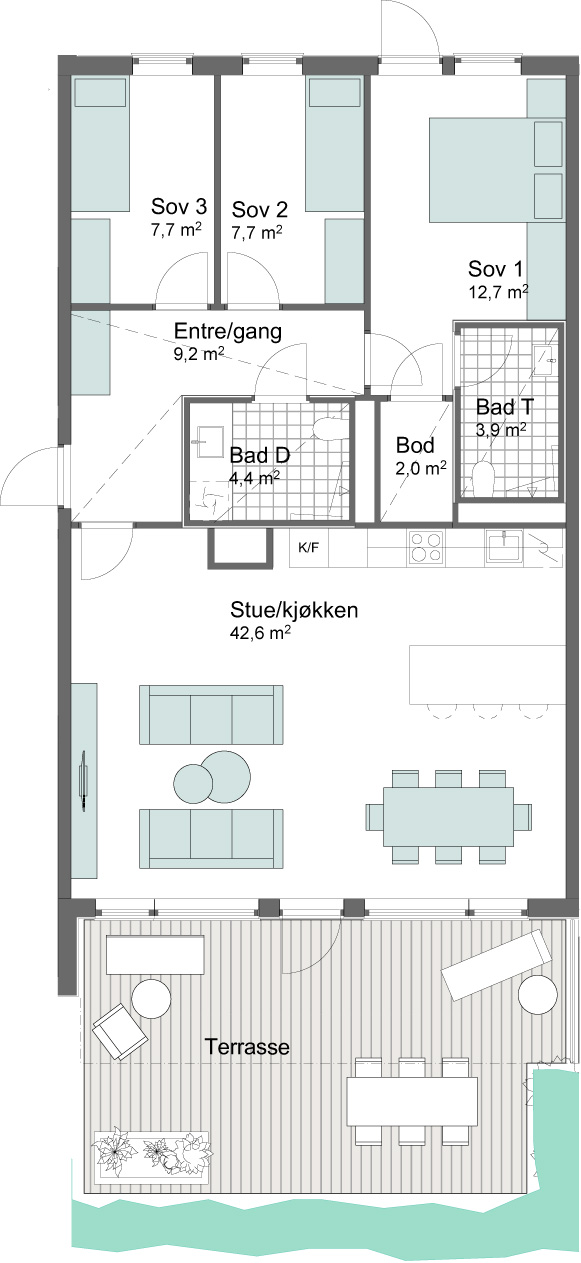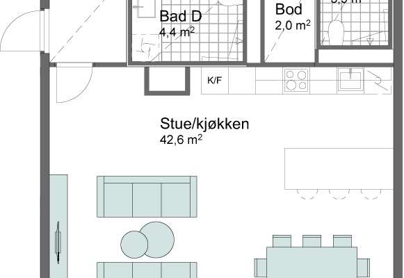Vi bygger med 2,60 m takhøyde, store vindusflater og lys en-stavs eikeparkett. Lavt energiforbruk og godt inneklima.