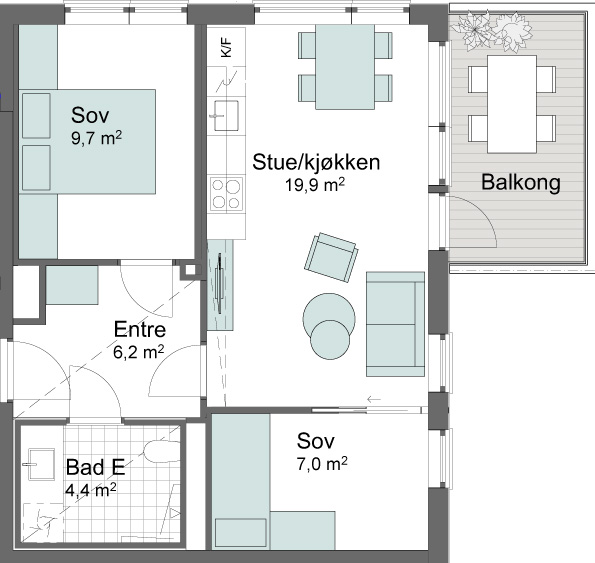 Vi bygger med 2,60 m takhøyde, store vindusflater og lys en-stavs eikeparkett. Lavt energiforbruk og godt inneklima.