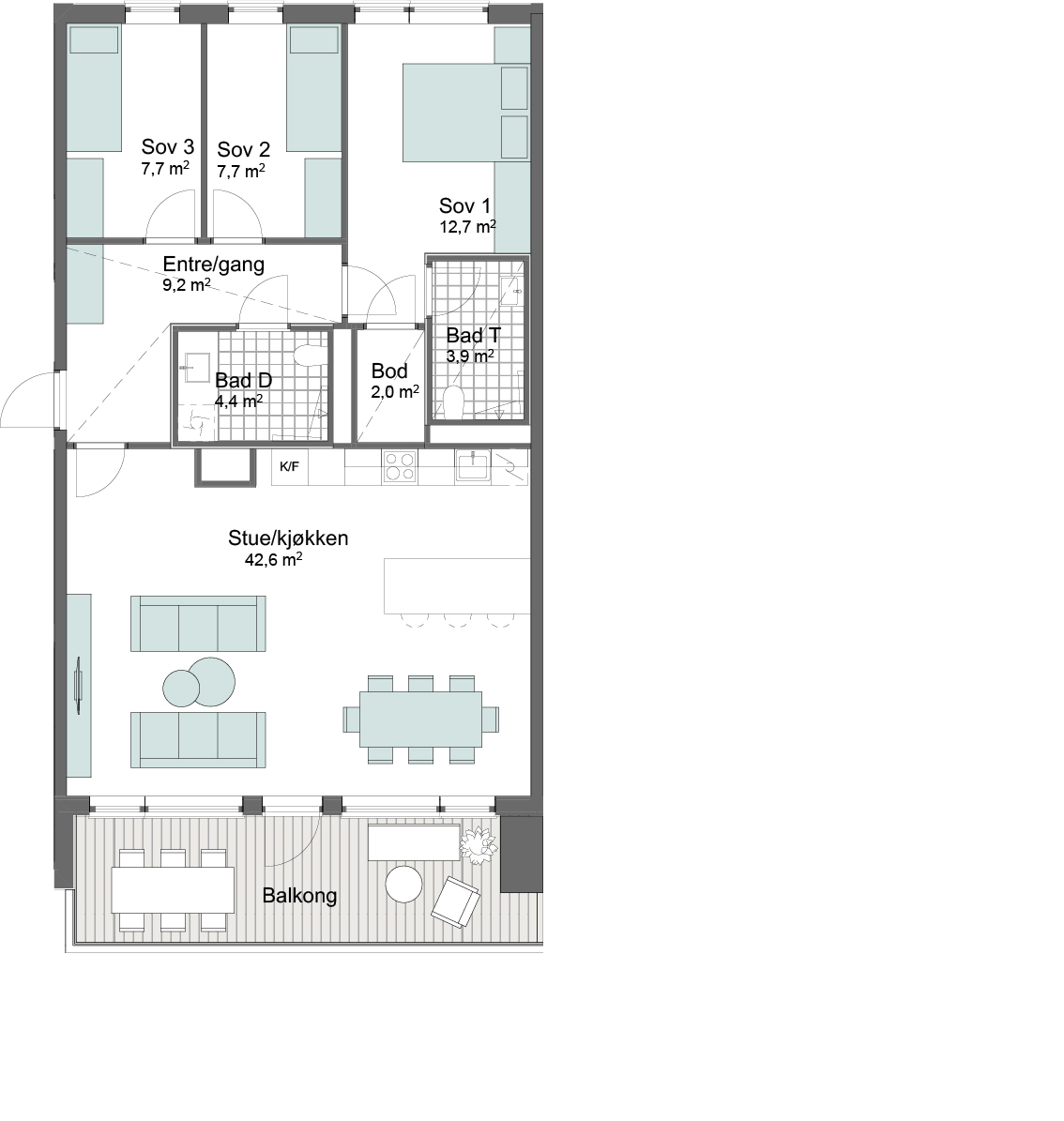 Vi bygger med 2,60 m takhøyde, store vindusflater og lys en-stavs eikeparkett. Lavt energiforbruk og godt inneklima.