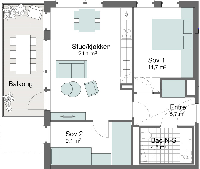 Vi bygger med 2,60 m takhøyde, store vindusflater og lys en-stavs eikeparkett. Lavt energiforbruk og godt inneklima.