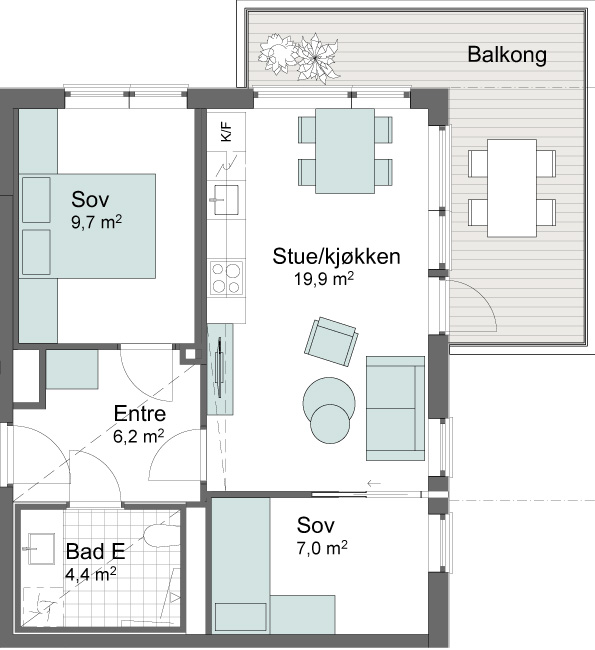 Vi bygger med 2,60 m takhøyde, store vindusflater og lys en-stavs eikeparkett. Lavt energiforbruk og godt inneklima.