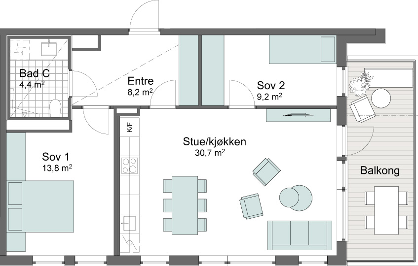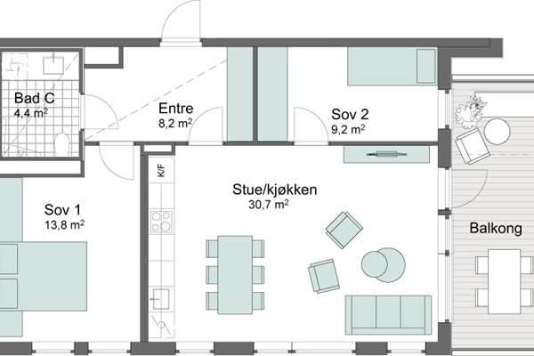Vi bygger med 2,60 m takhøyde, store vindusflater og lys en-stavs eikeparkett. Lavt energiforbruk og godt inneklima.