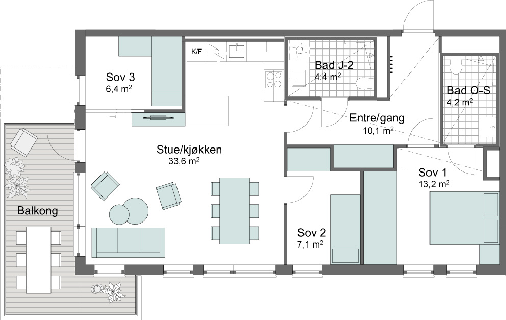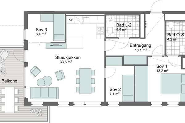 Vi bygger med 2,60 m takhøyde, store vindusflater og lys en-stavs eikeparkett. Lavt energiforbruk og godt inneklima.