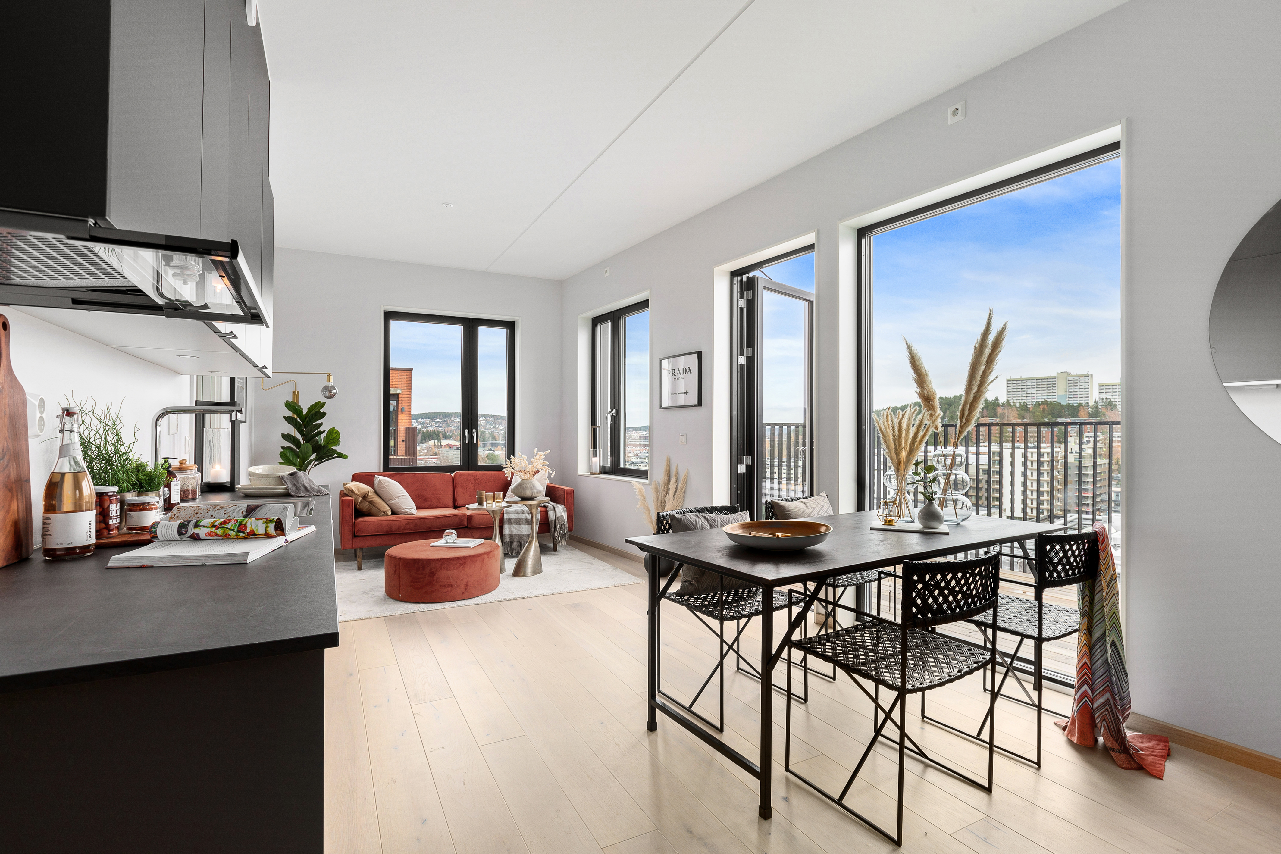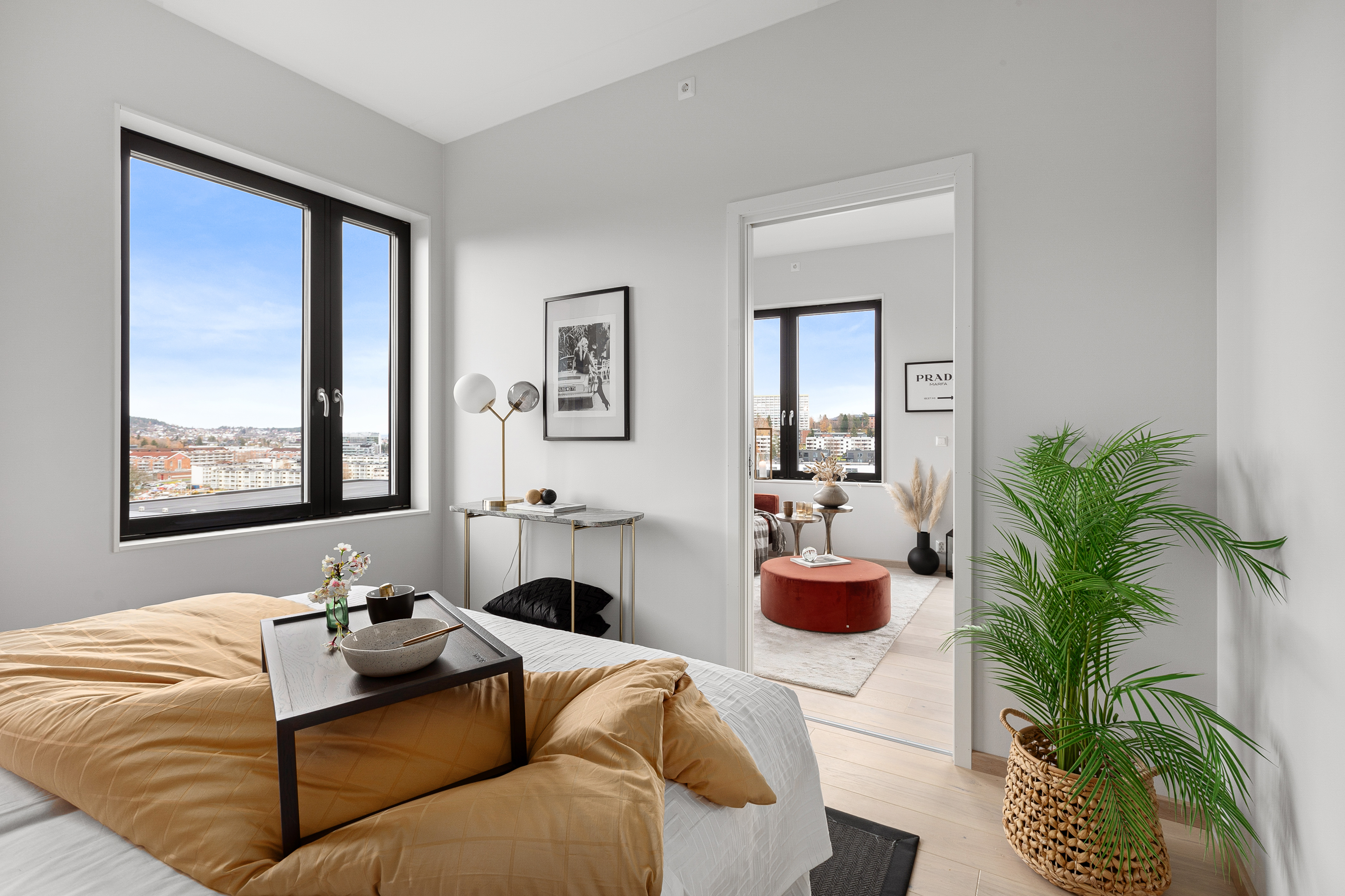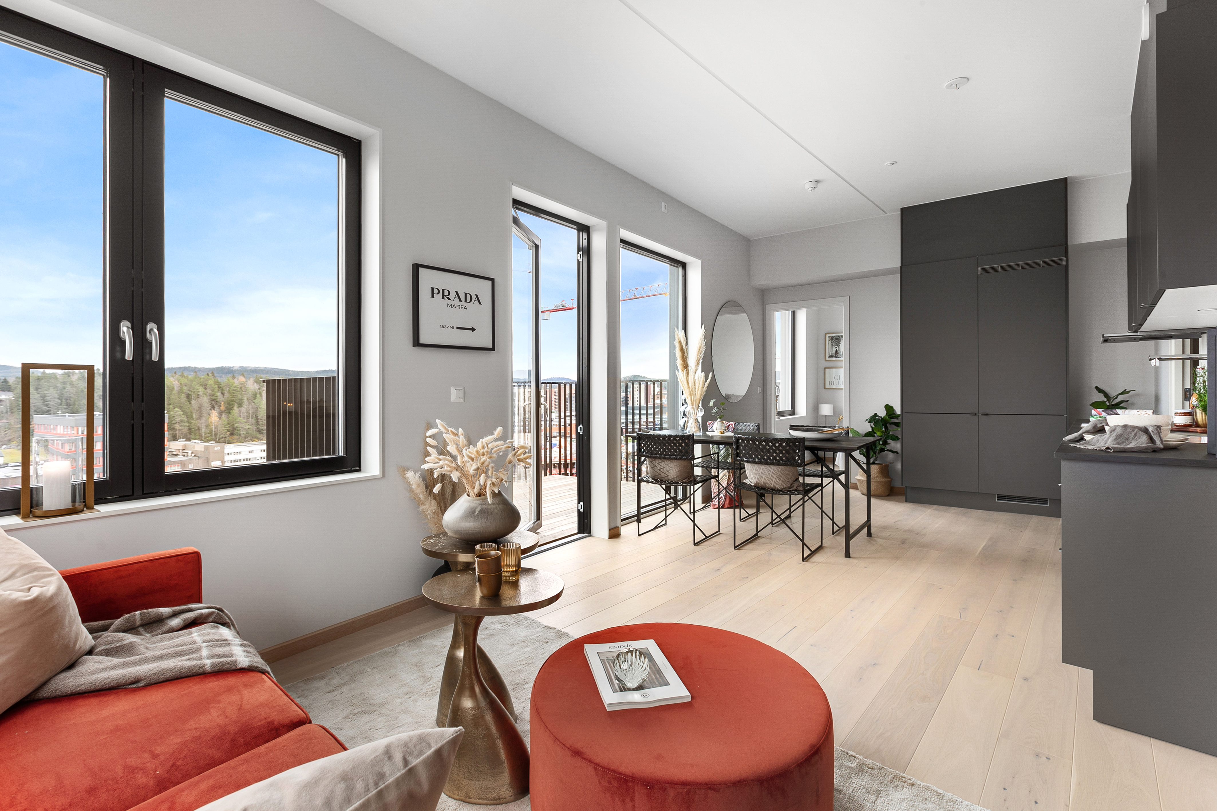 Lys og luftig leilighet med 2,60 takhøyde, store vindusflater og lys en-stavs eikeparkett. Balansert ventilasjon sikrer godt inneklima og lave energikostnader. Som eier av en Plussbolig utvides hverdagssonen med et 600 kvm stort fellesområde: kaffebar, lounge, selskapsrom, treningssenter, møterom og gjesterom for overnattingsbesøk. Leiligheter som har p-plass inkludert leveres med el. bil lader