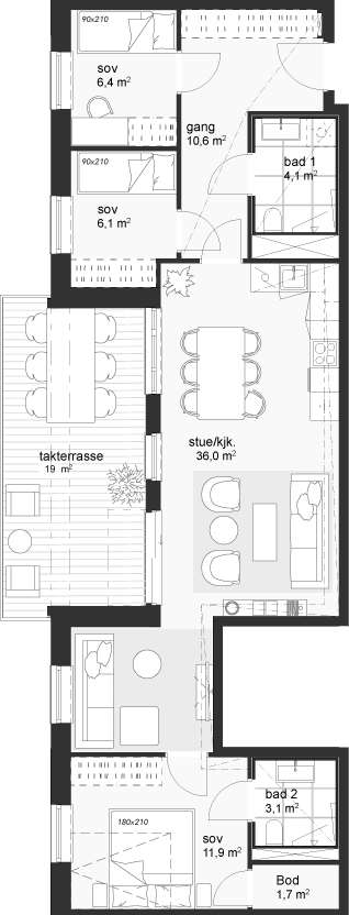 Lys og luftig 4-roms leilighet