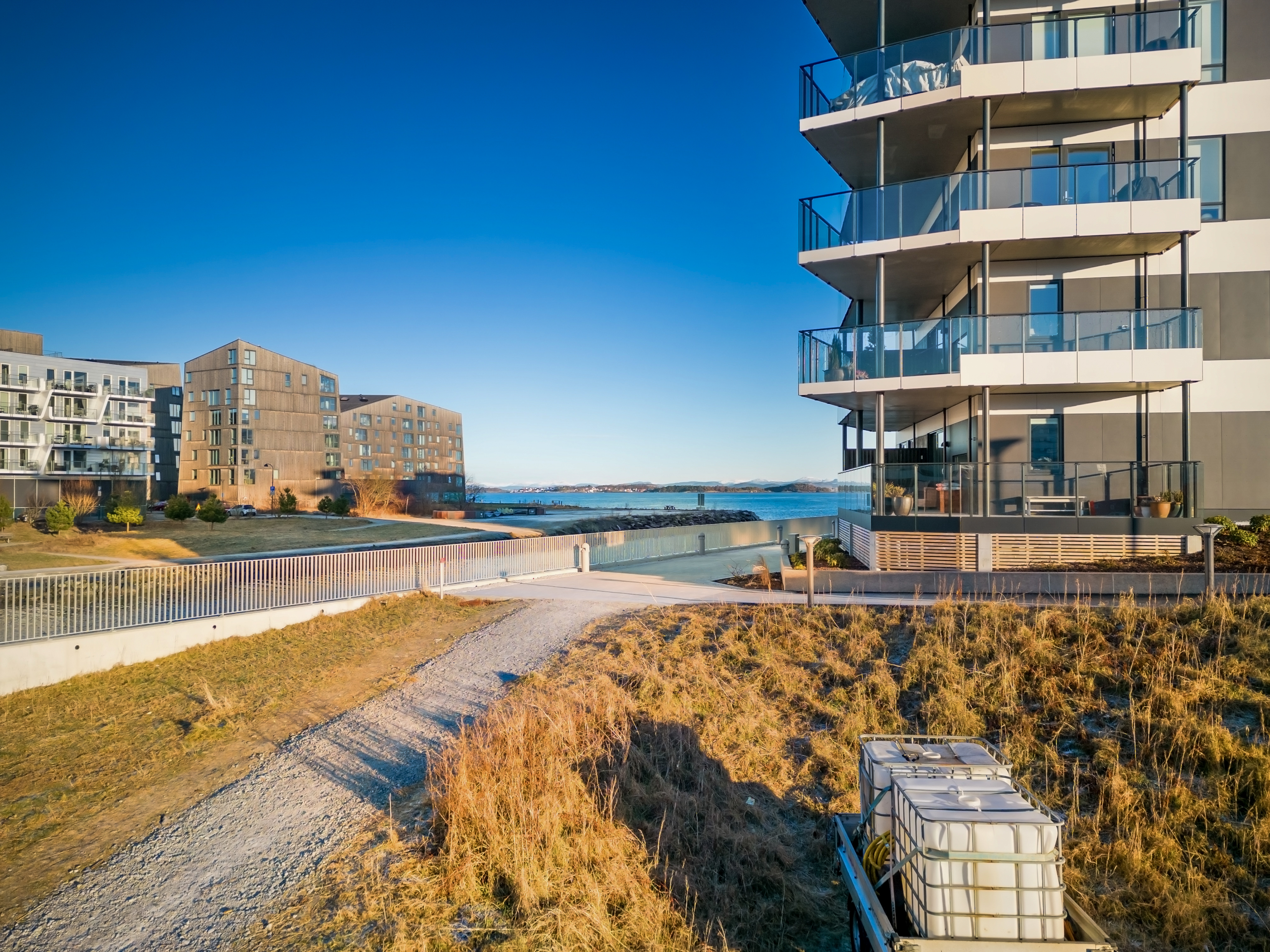 Leiligheten planlegges med lyst tregulv, generøs takhøyde, store vindusflater og vannbåren varme i gulv. Det er valgt interiørkonsept 'Nordisk', med hvit himling og grå toner på bad og kjøkken. Balansert ventilasjon sørger for godt inneklima og lave kostnader til oppvarming. Ny bolig kommer med fem års reklamasjonsrett og oppfølging fra utbygger. Alt dette, pluss frisk sjøluft gjennom soveromsvinduet. Mulighet for kjøp av parkeringsplass.