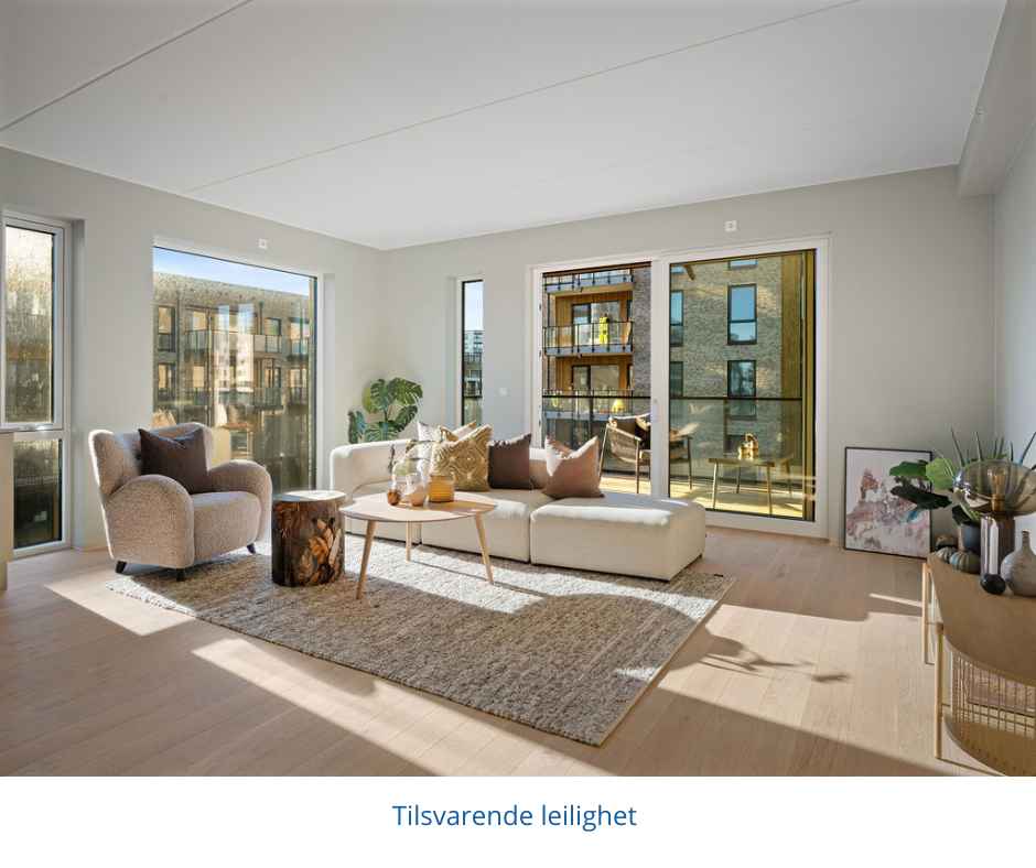 Leiligheten planlegges med lyst tregulv, generøs takhøyde, store vindusflater og vannbåren varme i gulv. Interiørkonsept 'Nordisk', med hvit himling og beige toner på bad og kjøkken. Balansert ventilasjon sørger for godt inneklima og lave kostnader til oppvarming. Ny bolig kommer med fem års reklamasjonsrett og oppfølging fra utbygger. Alt dette, pluss frisk sjøluft gjennom soveromsvinduet. Mulighet for kjøp av parkeringsplass.