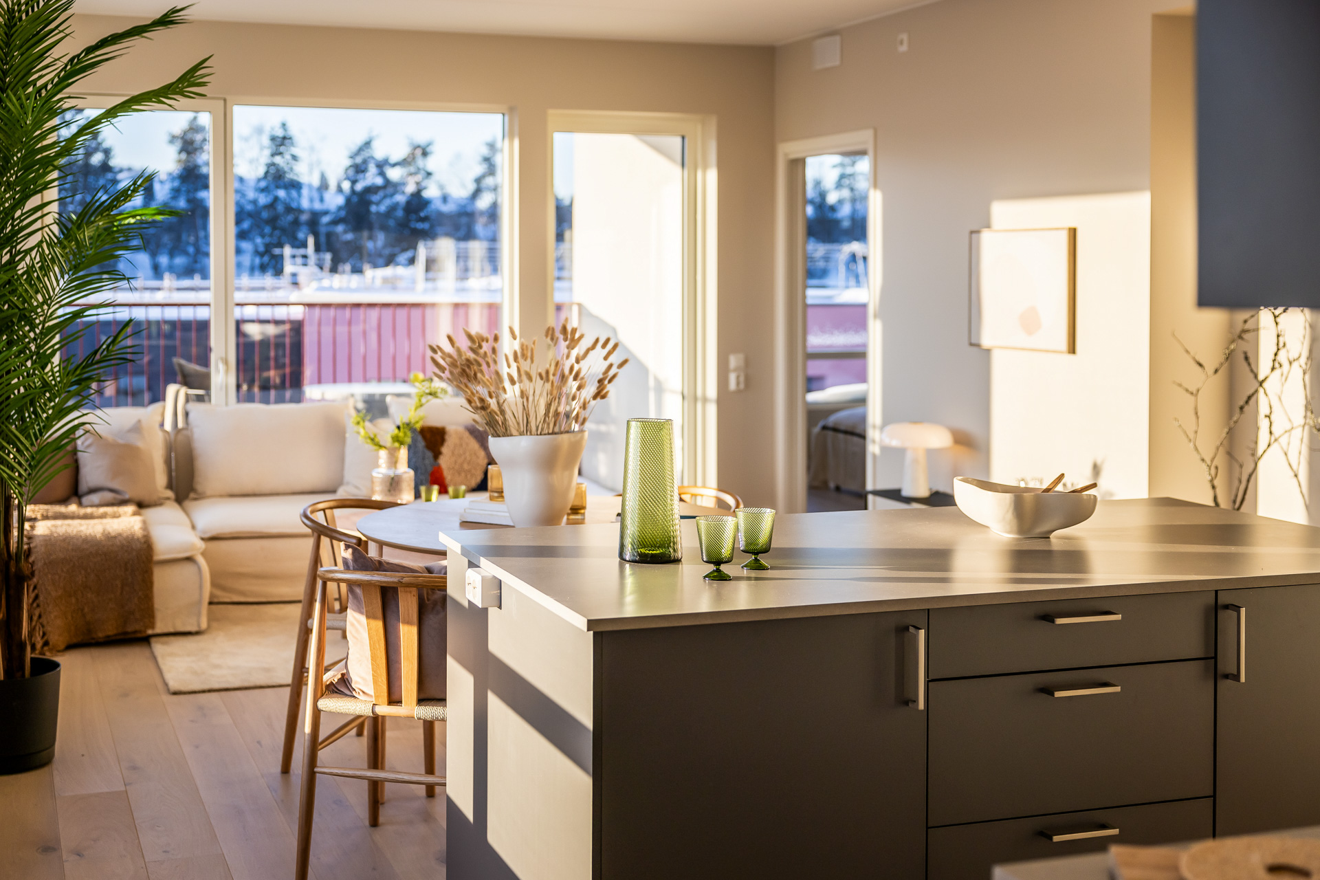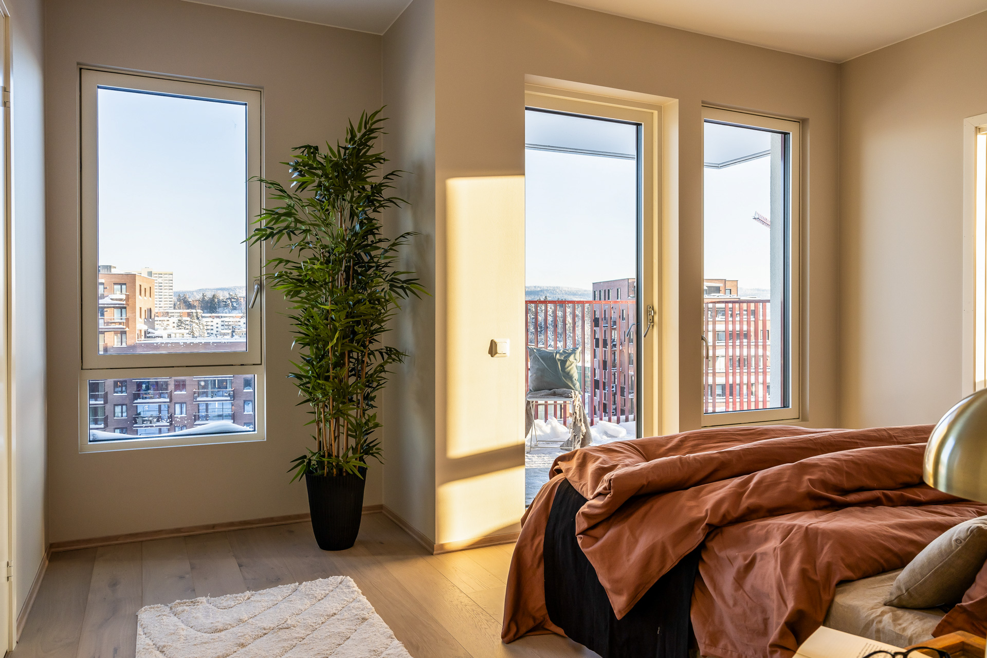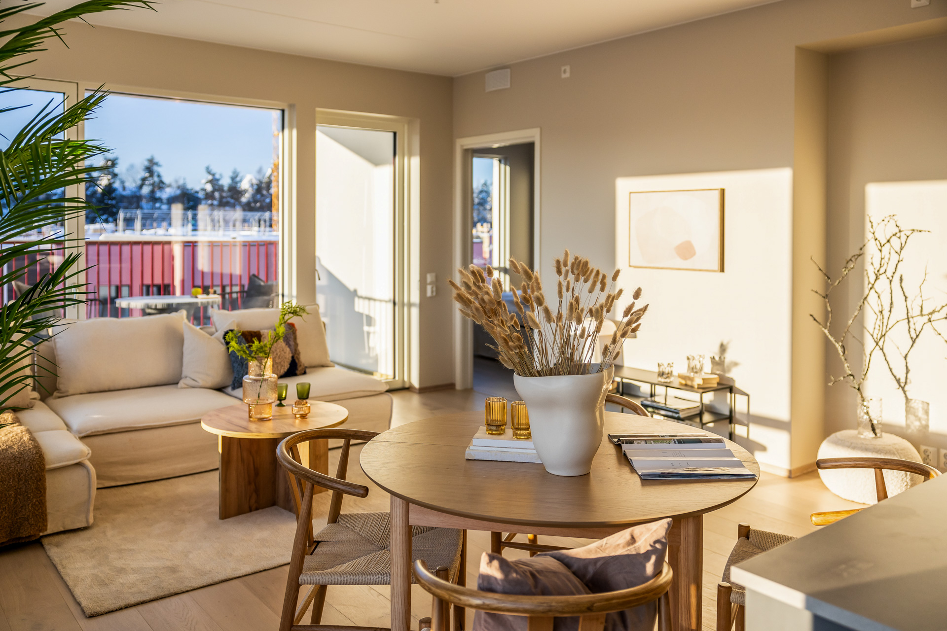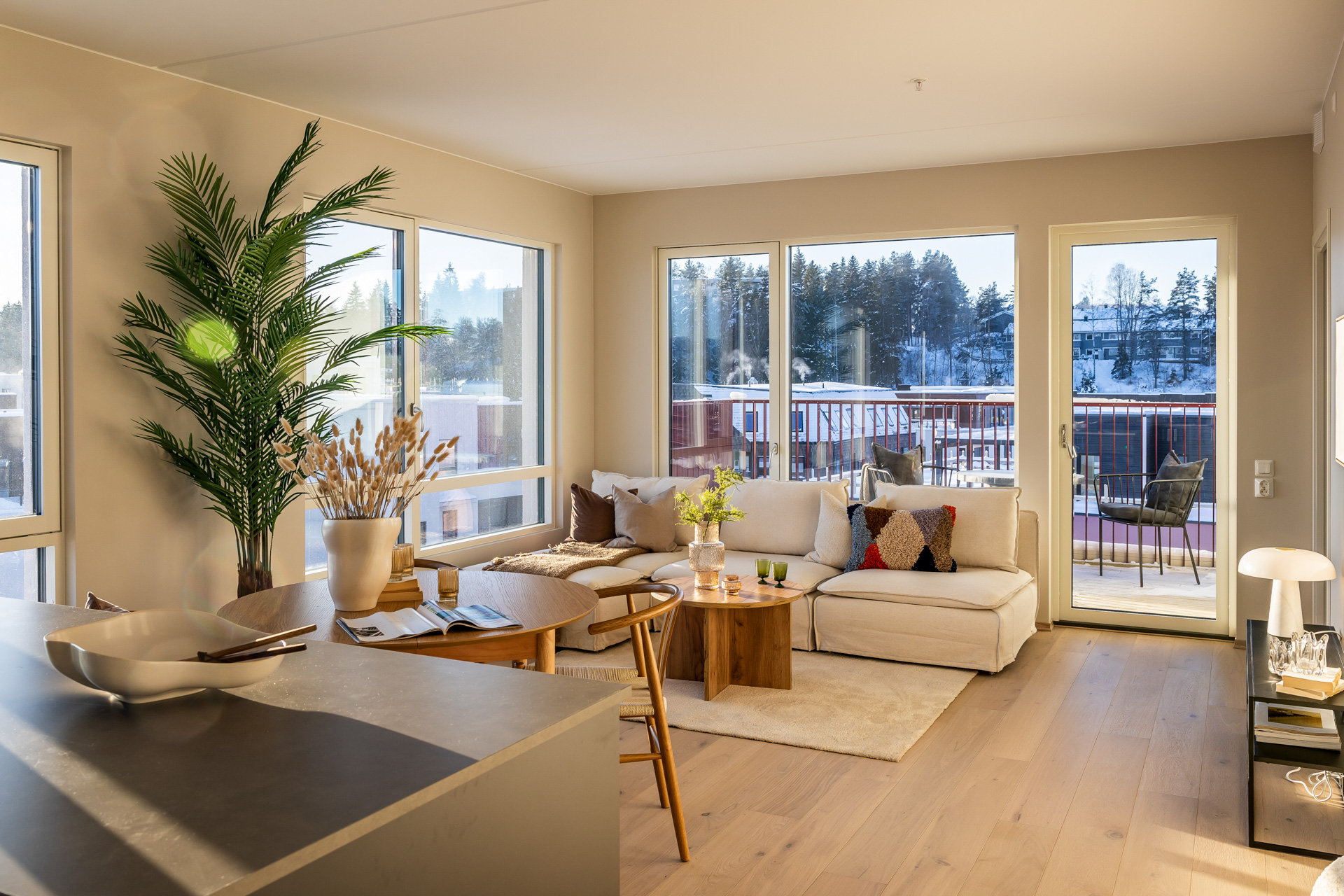 Åpen stue/kjøkkenløsning med takhøyde på 2.6 meter og store vinduer som slipper lyset inn. Pen og tidsriktig lys en-stavs eikeparkett, og lys innredning og fargedekor. Balansert ventilasjon med varmegjenvinning som sørger for godt inneklima og lave kostnader for oppvarming. Vi tilbyr nå Deleie i samarbeid med Coo til alle våre boligkjøpere. Ta kontakt med selger for mer informasjon!