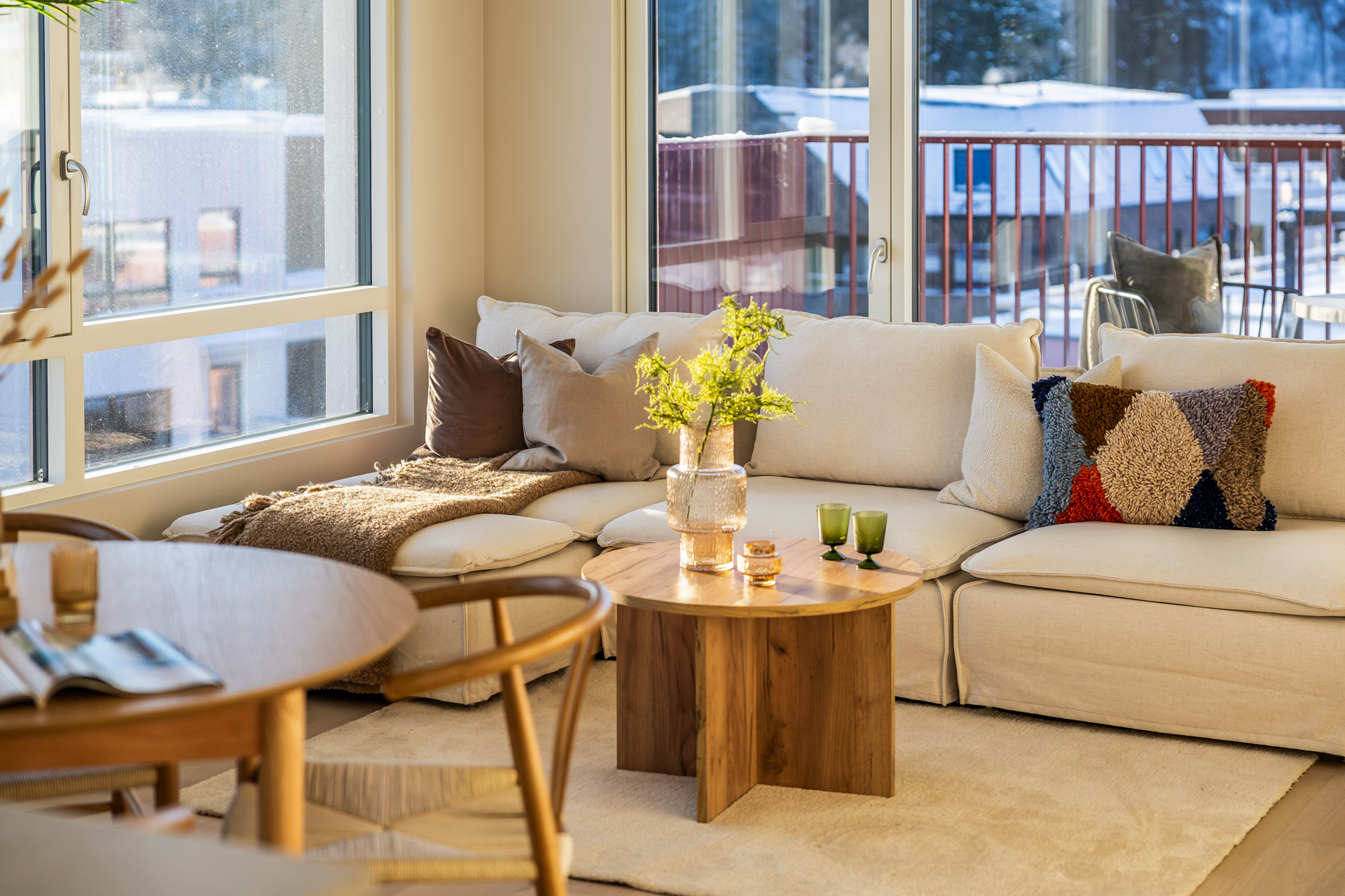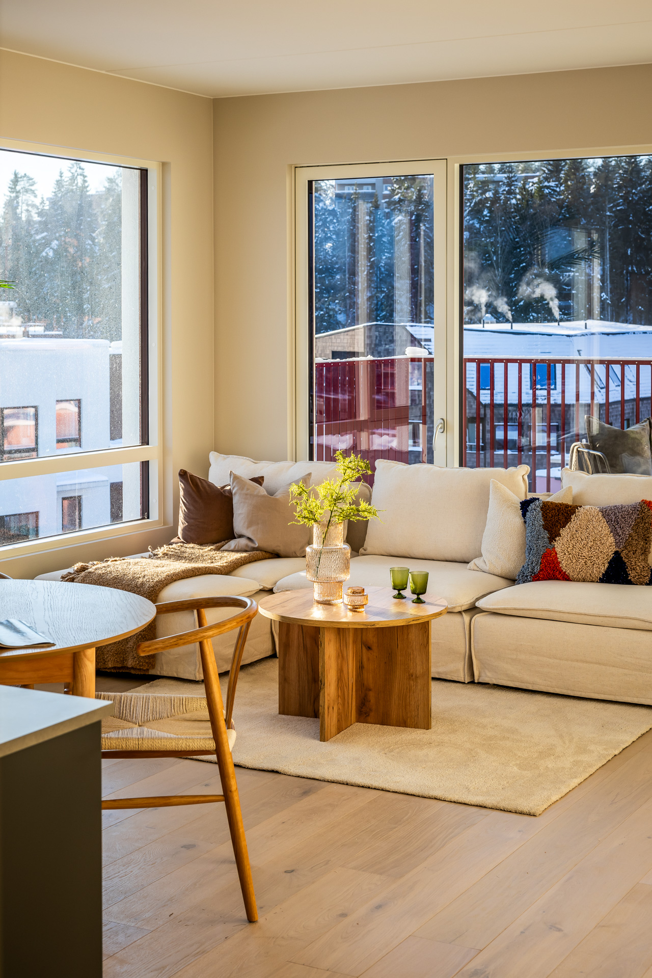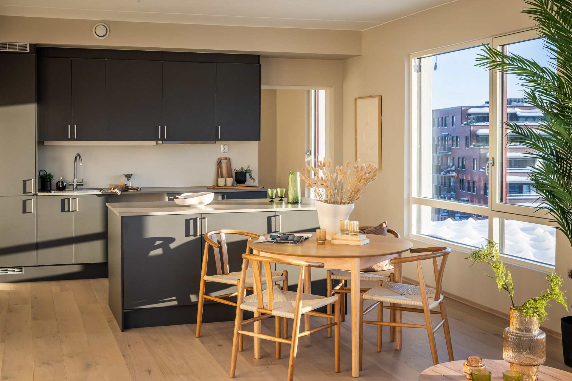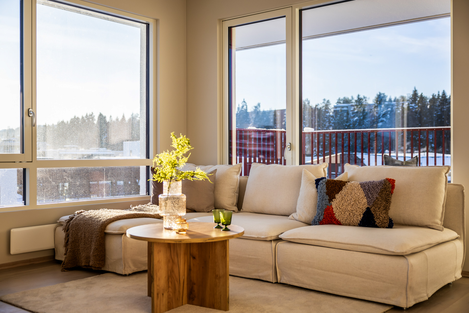 Åpen stue/kjøkkenløsning med takhøyde på 2.6 meter og store vinduer som slipper lyset inn. Pen og tidsriktig lys en-stavs eikeparkett, og lys innredning og fargedekor. Balansert ventilasjon med varmegjenvinning som sørger for godt inneklima og lave kostnader for oppvarming. Vi tilbyr nå Deleie i samarbeid med Coo til alle våre boligkjøpere. Ta kontakt med selger for mer informasjon!