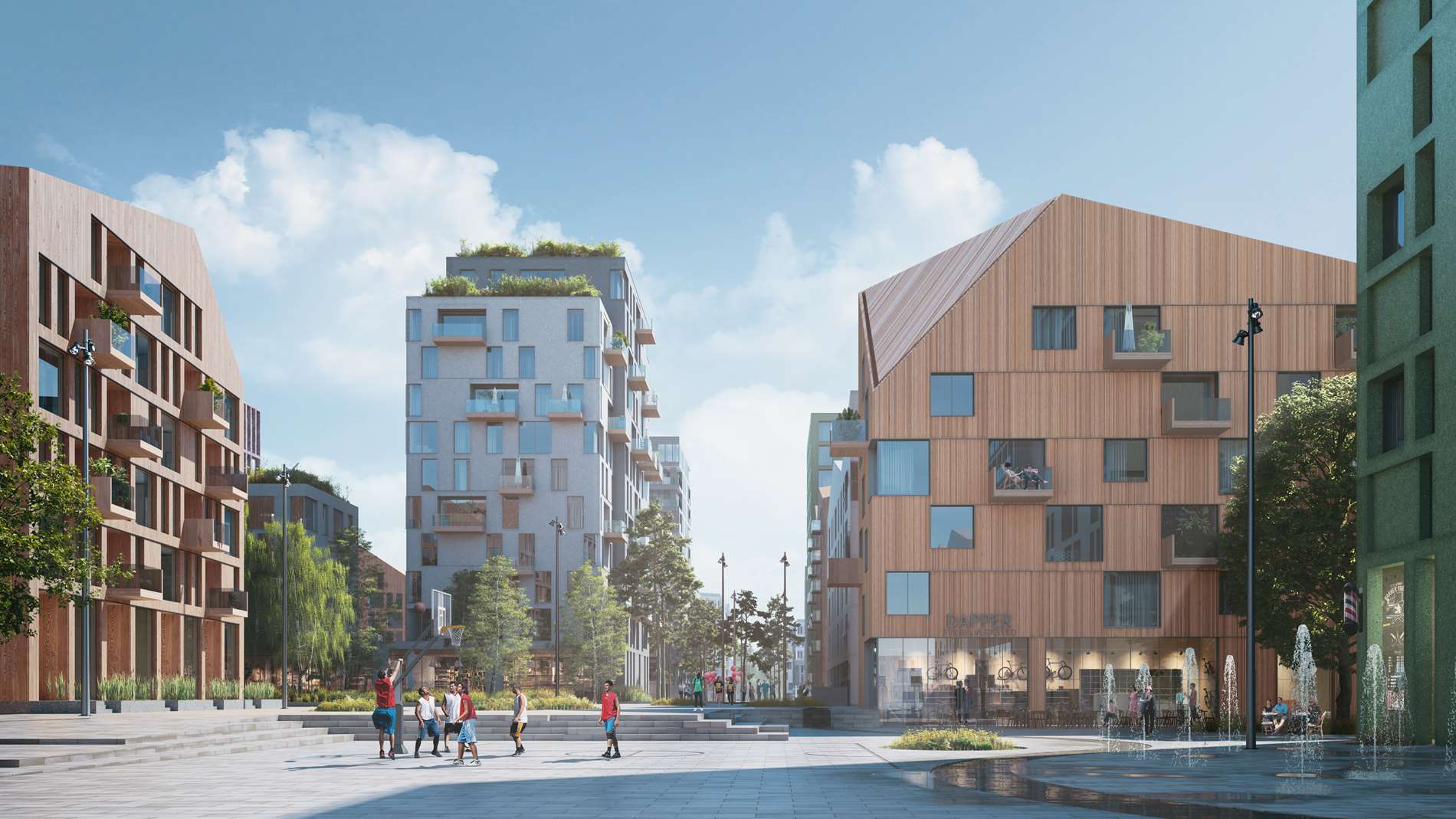 Nansenparken er Fornebus grønne hjerte og bebyggelsen rundt denne skal sikre en god overgang mellom Byen og Landet. Eksisterende parker og rekreasjonsområder skal bevares, og det skal gjennomføres tiltak som vil heve kvaliteten i slike grøntområder. Boligene i dette området skal være mindre bymessige. Bebyggelsen i dette området vil være en del av opplevelsen av Parken, og utbyggingsområdene i Parken vil grense til park på tre sider og gate på en side.