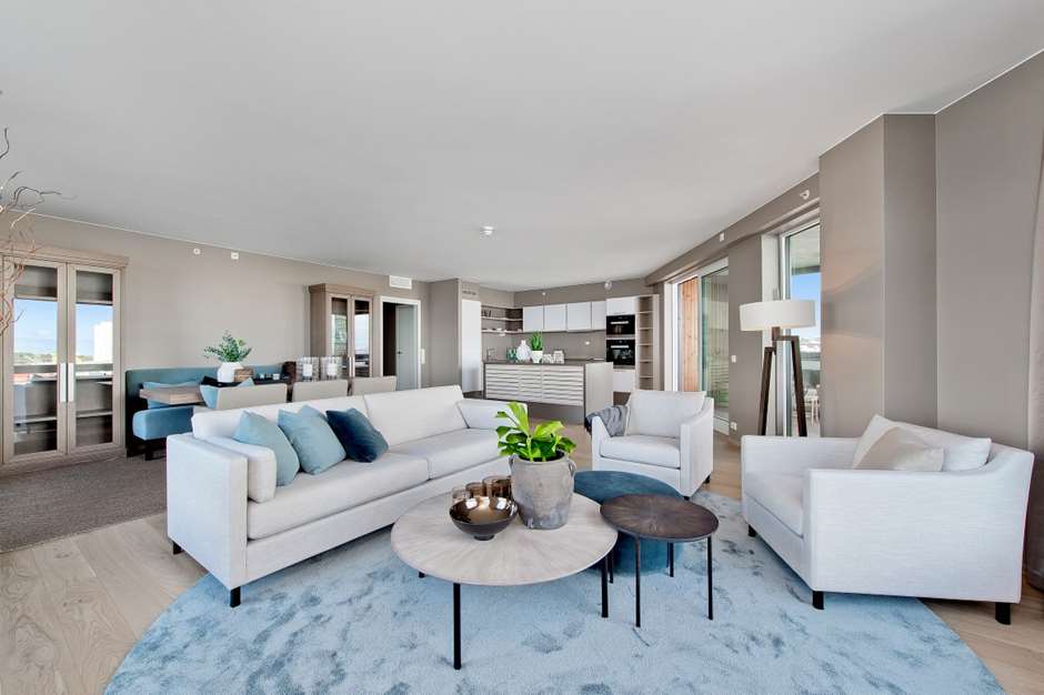 Vi fikk hjelp av Marit Furenes ved Slettvoll i Stavanger til å møblere vår nye visningsleilighet. Leiligheten ligger i høyhuset B6 i Lervig Brygge Pluss. Vi har bedt Marit dele tankene bak møbleringsvalgene hun har gjort for oss: