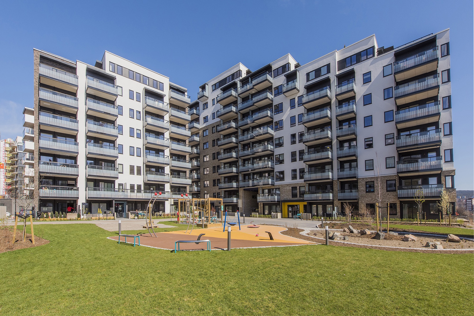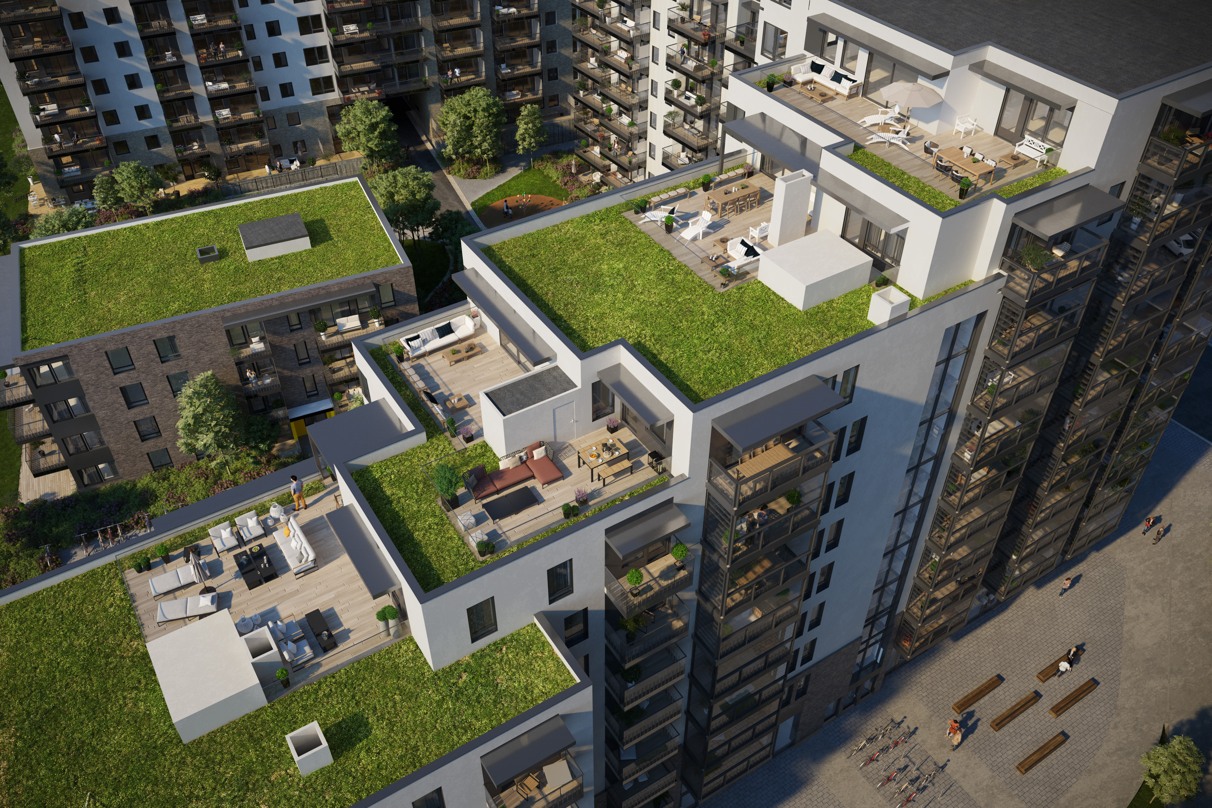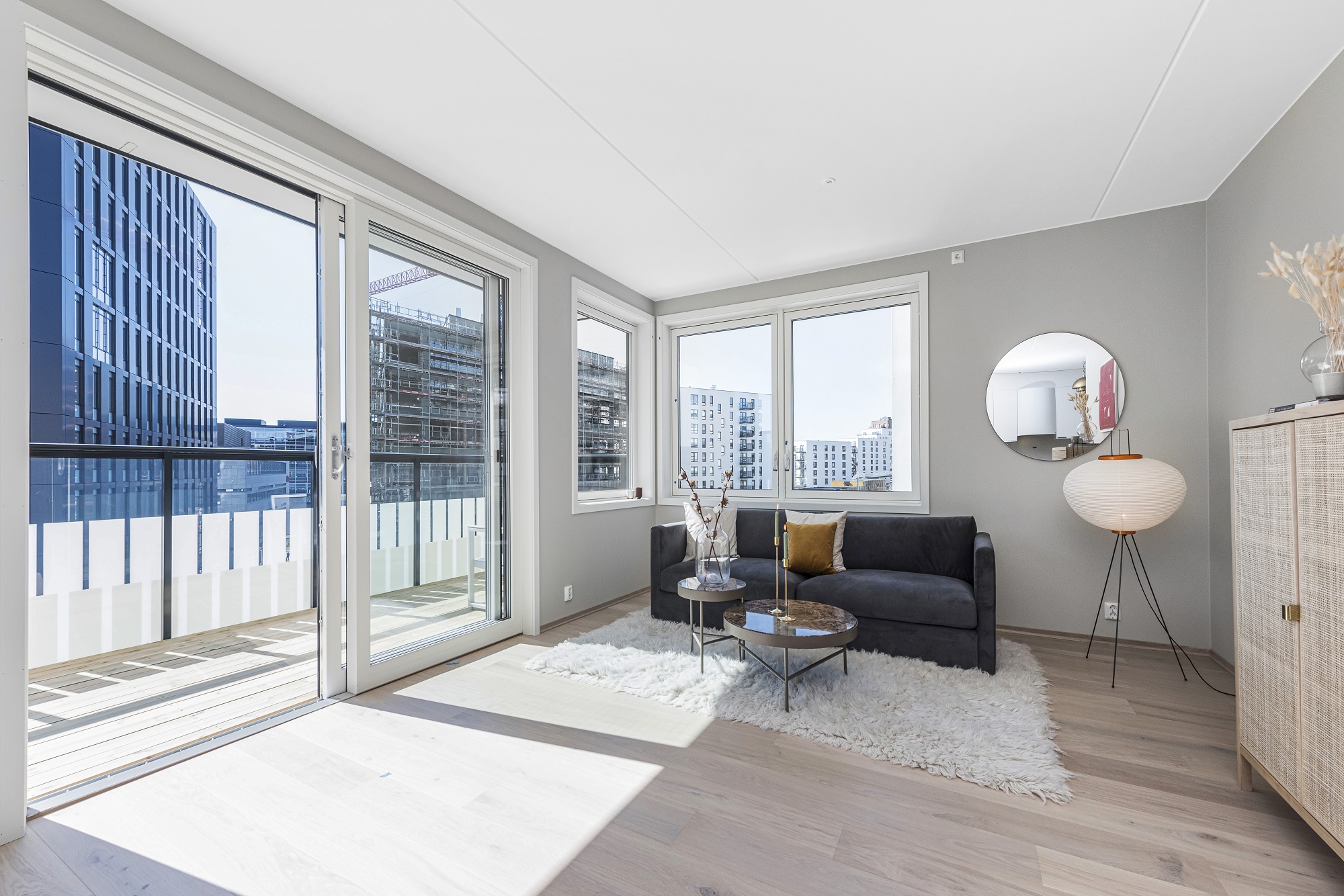 Alle illustrasjoner er utarbeidet basert på tegninger av fremtidige bygg. Illustrerte fasader vil kunne avvike fra ferdige bygg. Elementer og materialer i illustrasjonene kan avvike fra standardleveranse. Øvrige bygg, beplantning, vegetasjon og fellesarealer er ikke endelig prosjektert.
