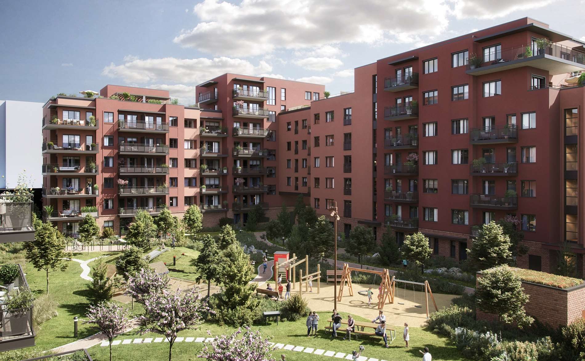 I Telekvartalet planlegges det 195 leiligheter fordelt på flere hus. Det blir en god miks av ulike planløsninger og størrelser - fra 2-roms leiligheter på 35 kvm til større 4-roms leiligheter på 92 kvm. Prosjektet får en stor og frodig gårdshage, i tillegg kan beboerne nyte flere felles takterrasser.