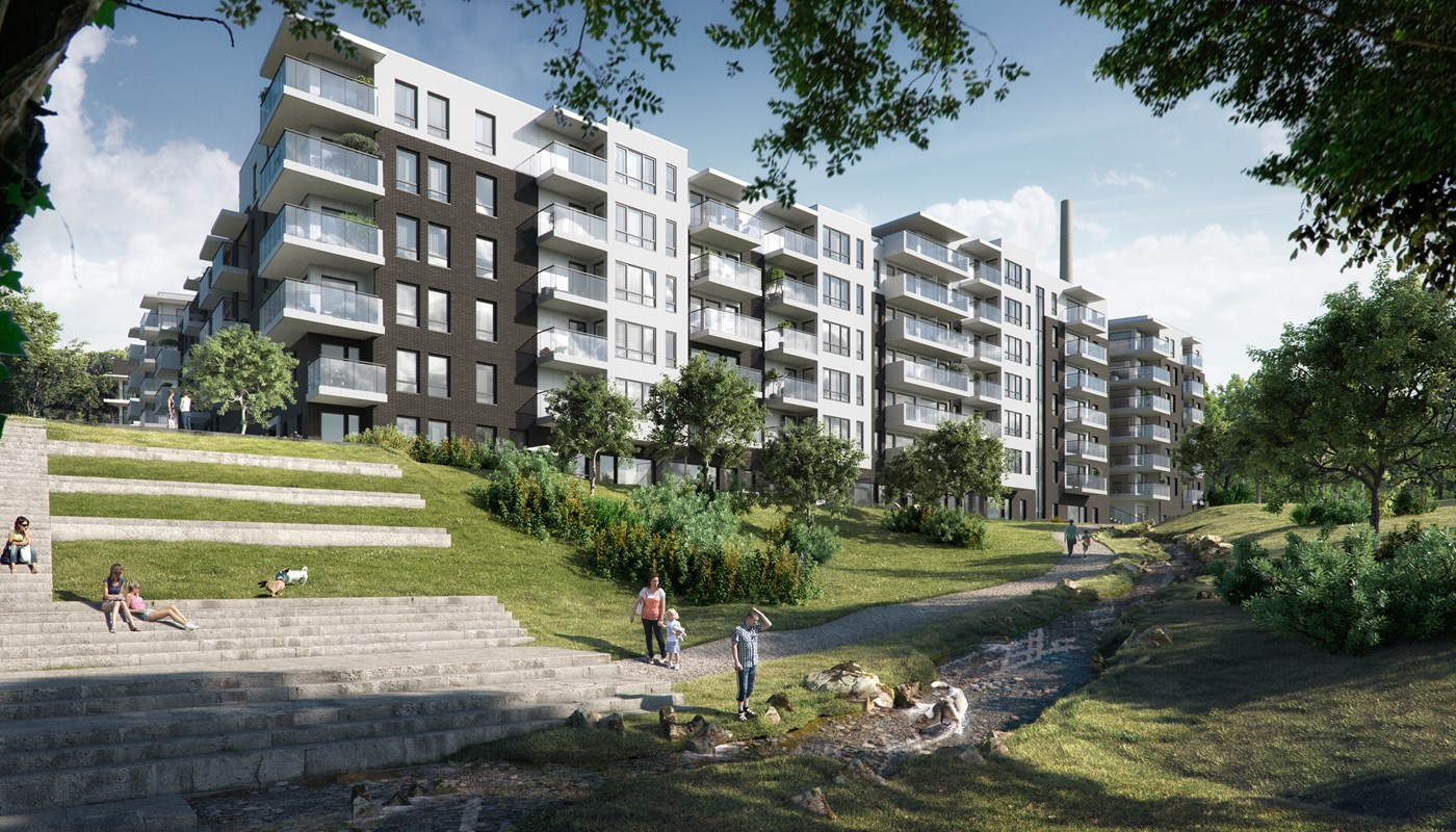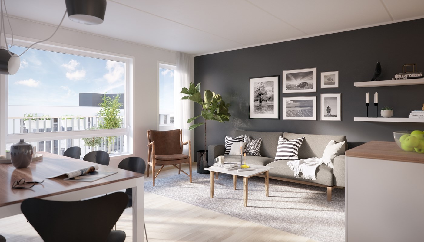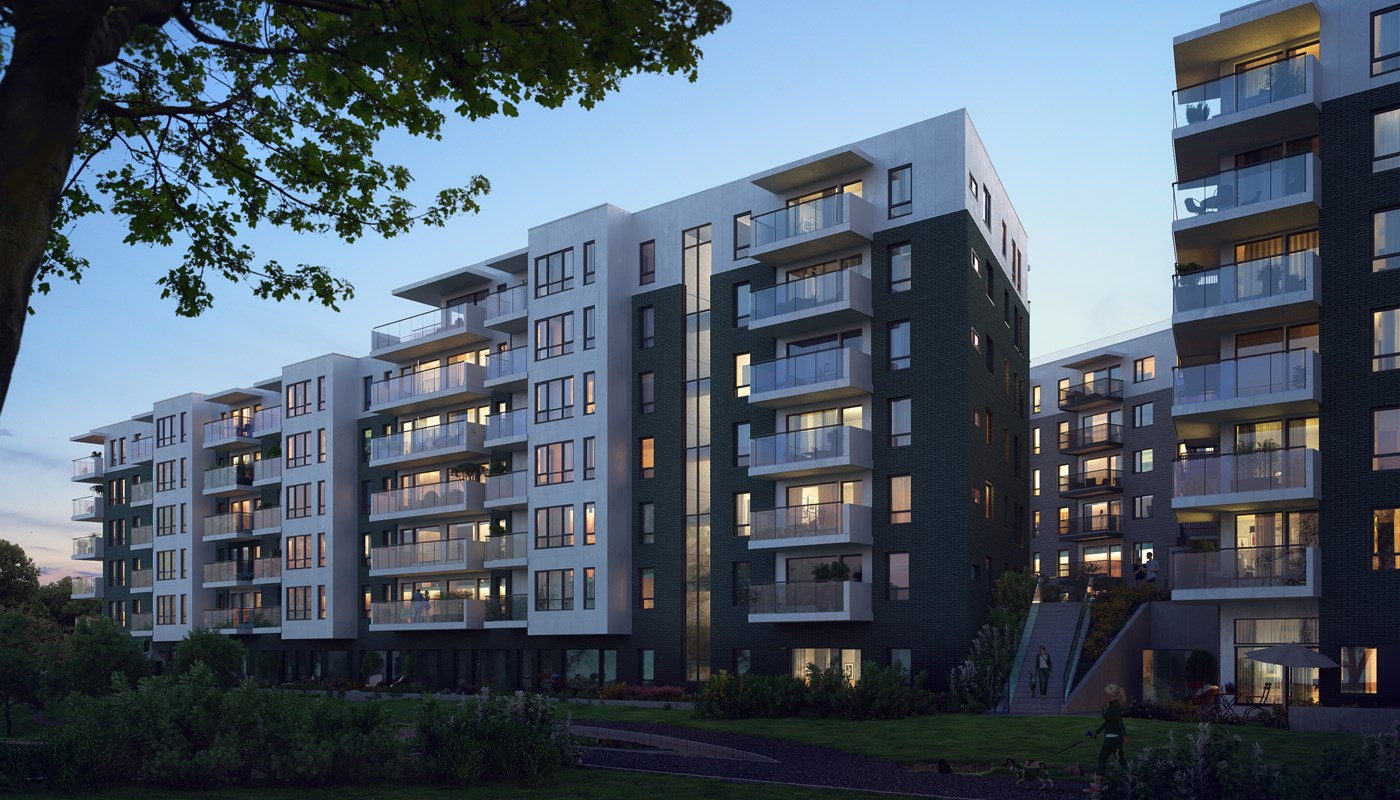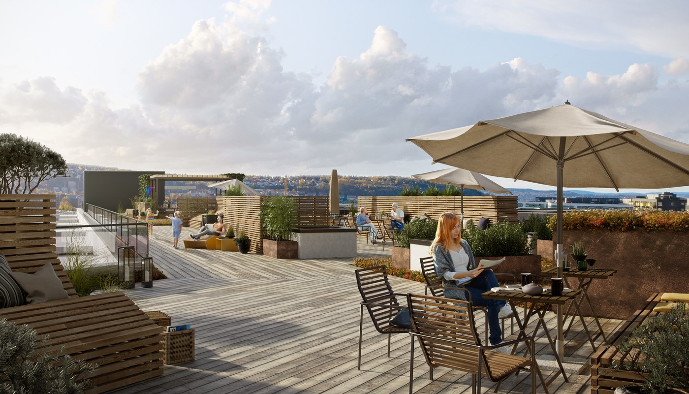 Alle illustrasjoner er utarbeidet basert på tegninger av fremtidige bygg. Illustrerte fasader vil kunne avvike fra ferdige bygg. Elementer og materialer i illustrasjonene kan avvike fra standardleveranse. Øvrige bygg, beplantning, vegetasjon og fellesarealer er ikke endelig prosjektert.